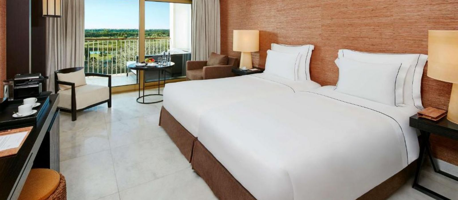 Offrant une vue sur les piscines et les fairways de golf, les chambres et les suites présentent une décoration moderne. Elles sont climatisées et disposent d’une télévision à écran plat, d’une station d'accueil, d’un minibar ainsi que d’une machine à café. Leur salle de bains décloisonnée est pourvue d’une douche à l’italienne, d’une baignoire, d’un sèche-cheveux, de chaussons, de peignoirs et d’articles de toilette de luxe.