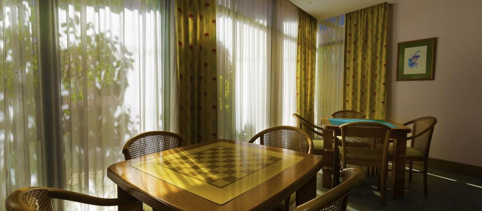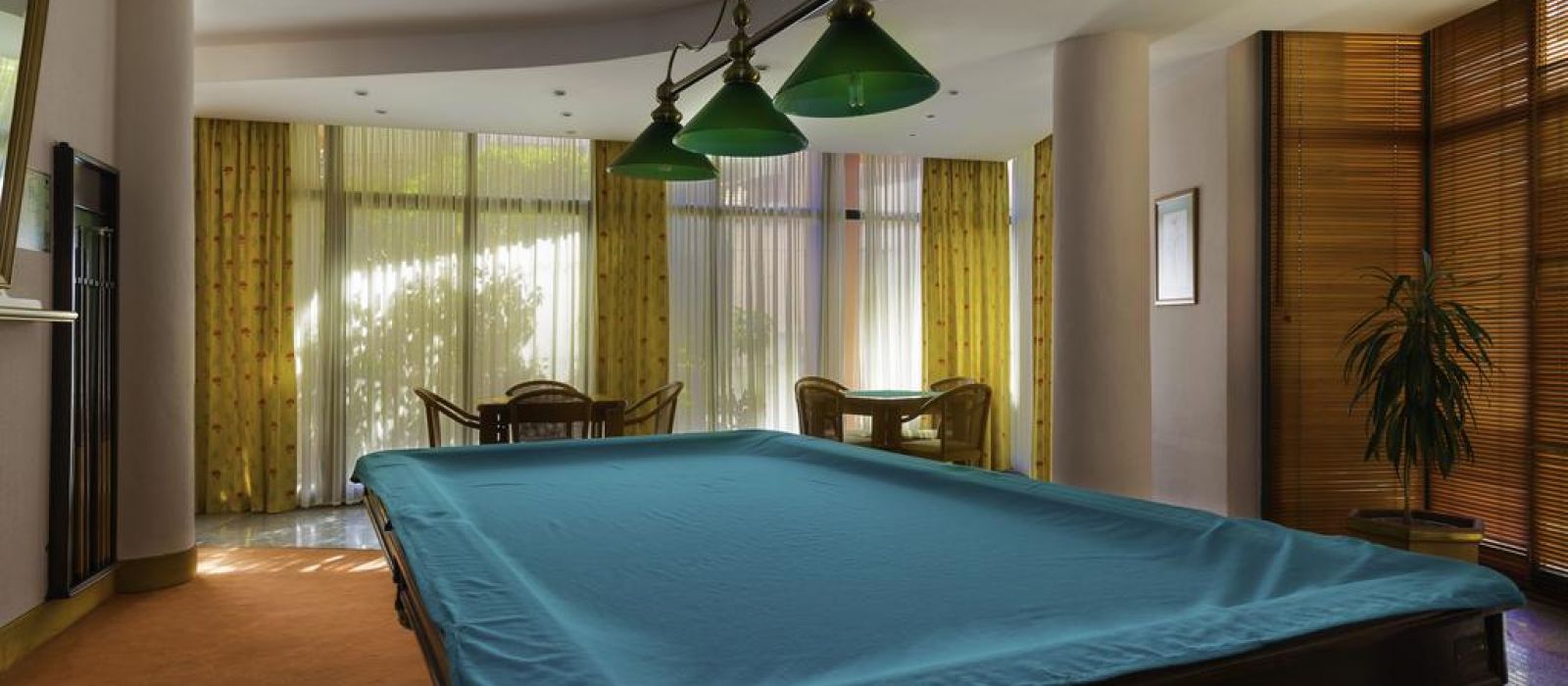 Vous pourrez vous rafraîchir en plongeant dans la piscine extérieure ou profiter du solarium. Il est également possible de se relaxer sous un palmier dans le jardin d'hiver ou de jouer au billard dans la salle de jeux.