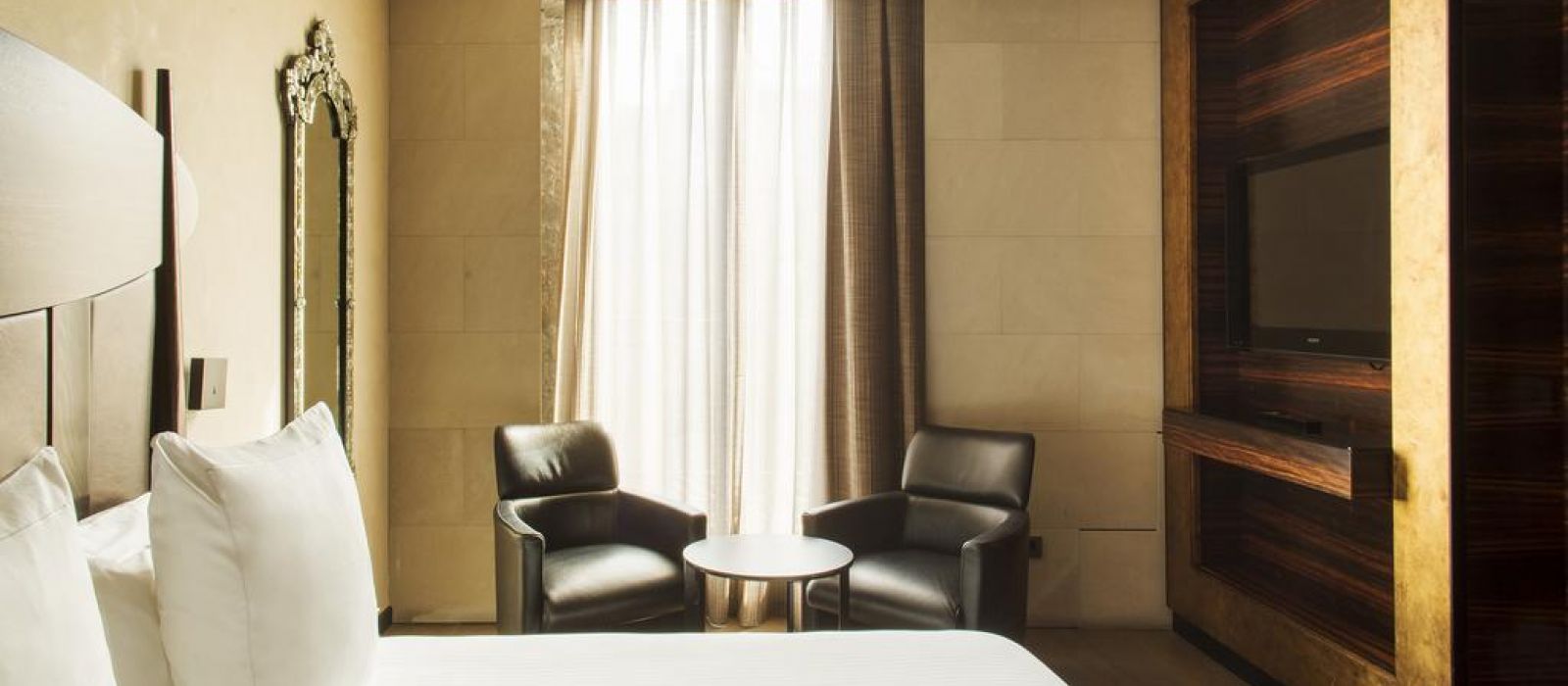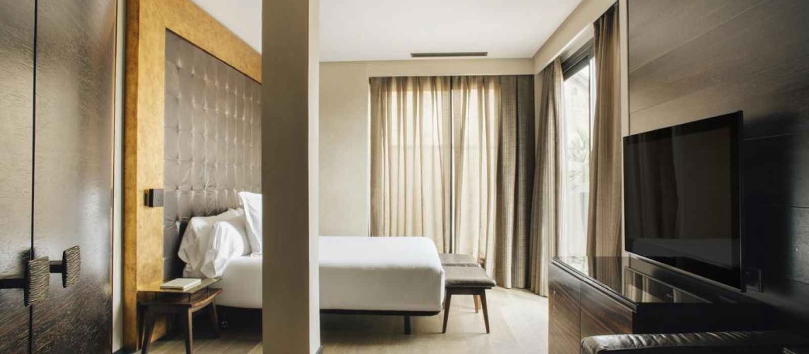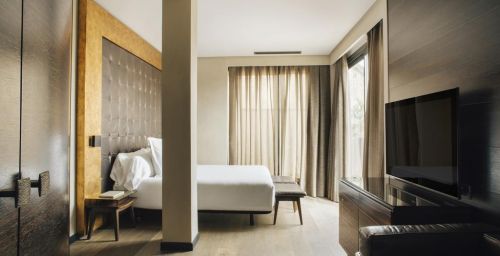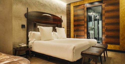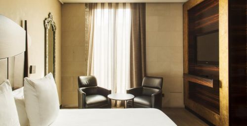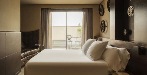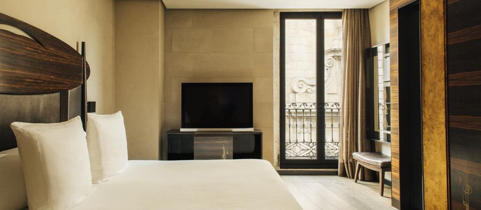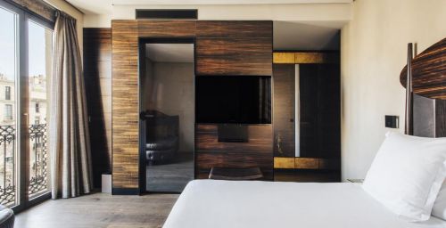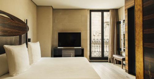 Les chambres sont décorées dans des tons riches, avec un mobilier d’ébène et des détails à la feuille d’or. Elles comprennent une station d'accueil pour iPod, une télévision par satellite à écran plat et un minibar avec des boissons sans alcool gratuites. La plupart des logements offrent une vue sur les Ramblas.