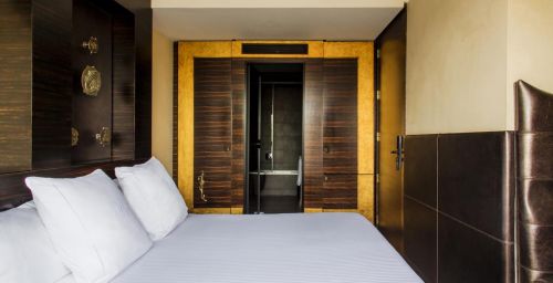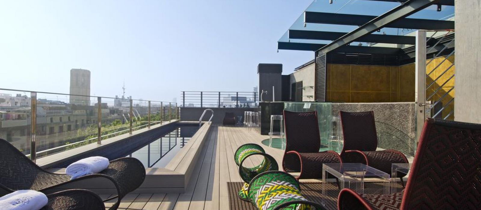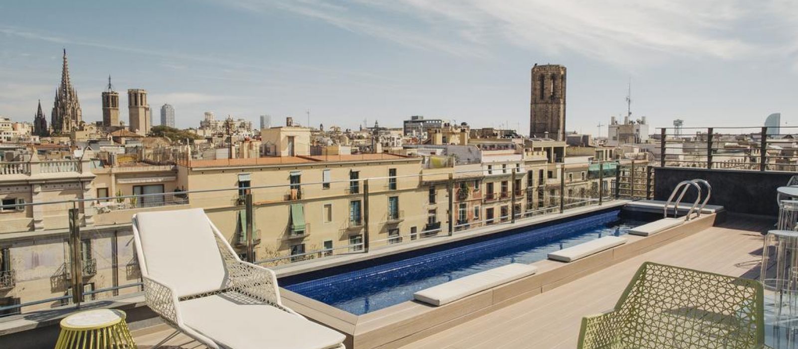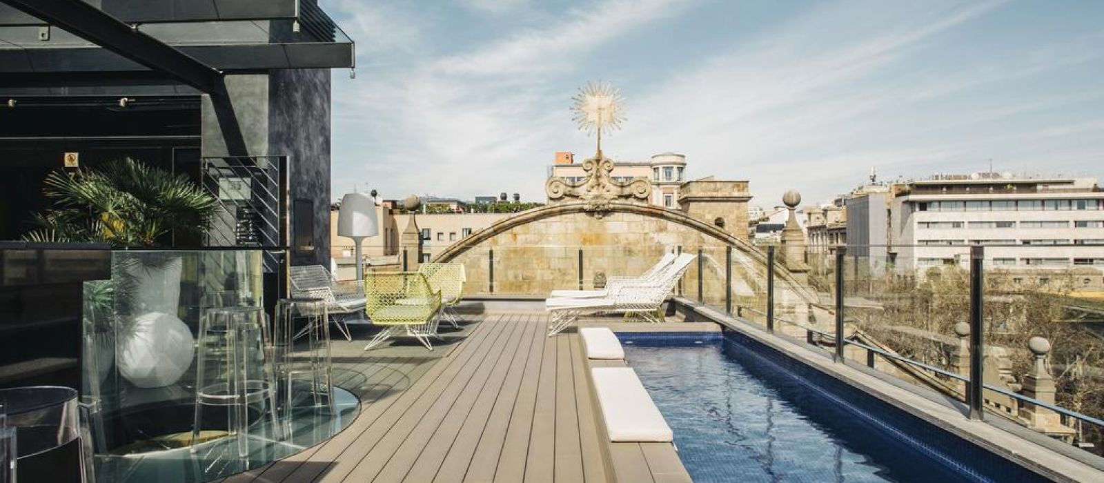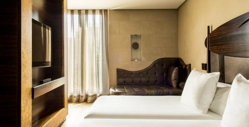 Les chambres sont décorées dans des tons riches, avec un mobilier d’ébène et des détails à la feuille d’or. Elles comprennent une station d'accueil pour iPod, une télévision par satellite à écran plat et un minibar avec des boissons sans alcool gratuites. La plupart des logements offrent une vue sur les Ramblas.