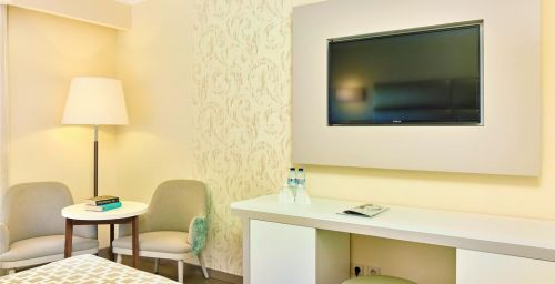 Décorées dans des tons neutres, les chambres de l'Hotel Baia Grande sont dotées d'un balcon et de la climatisation. Toutes comprennent un minibar et une télévision par satellite à écran plat. Certaines d'entre elles offrent une vue panoramique.