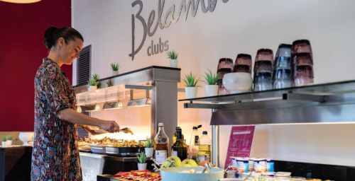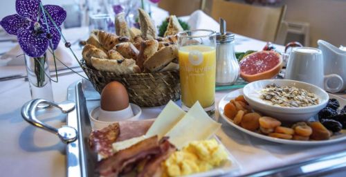 Cet hôtel sert chaque matin un petit-déjeuner buffet.