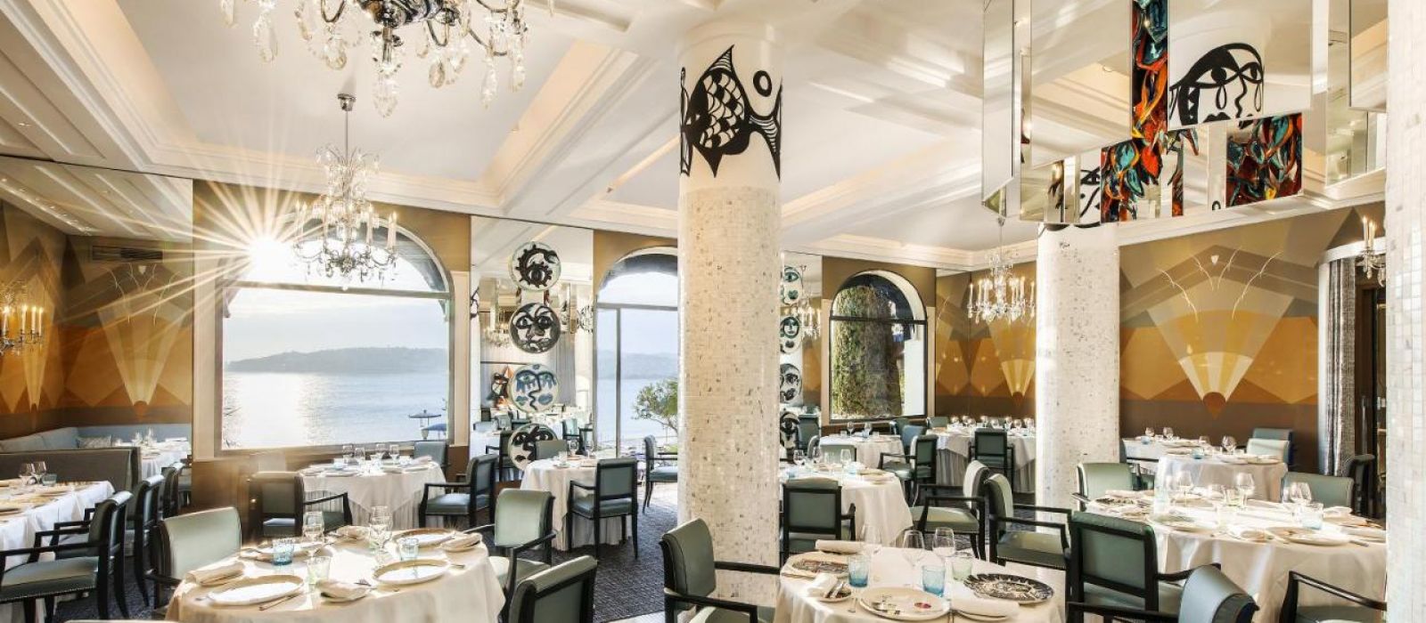 Le piano-bar Fitzgerald vous servira un choix d’apéritifs et de cocktails, ainsi qu’un menu léger, que vous pourrez déguster au bar ou sur la terrasse. Le restaurant récompensé par une étoile au guide Michelin, La Passagère, est doté d’une terrasse offrant une vue panoramique sur Juan-les-Pins, les îles de Lérins et le massif de l’Esterel. Il propose des spécialités à base de fruits de mer frais et des plats méditerranéens variés dans une vaisselle peinte à la main.