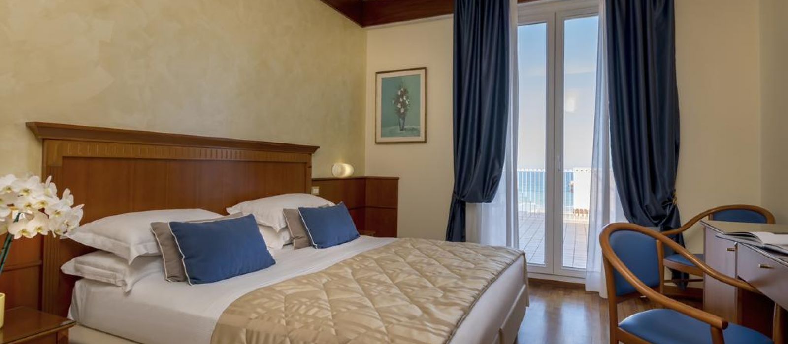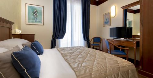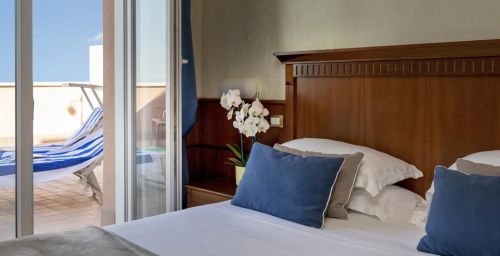 Les chambres présentent un style classique avec du parquet et un mobilier élégant. Insonorisées, elles comprennent toutes la climatisation, une télévision à écran plat, un minibar, ainsi qu'une salle de bains privative avec sèche-cheveux et articles de toilette. La plupart possèdent un balcon offrant une vue sur la mer Adriatique.