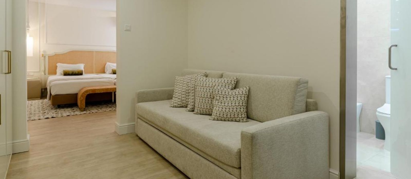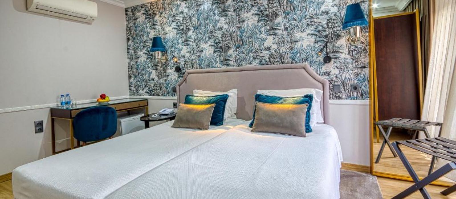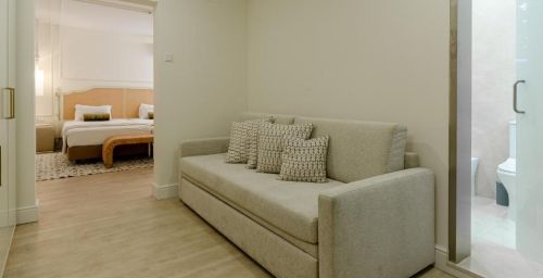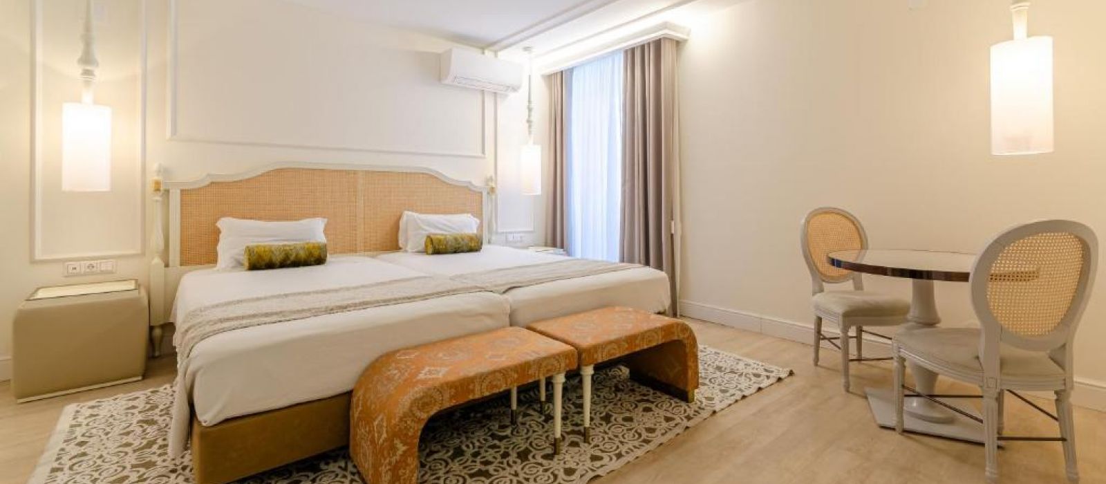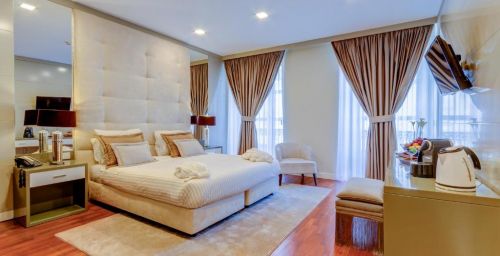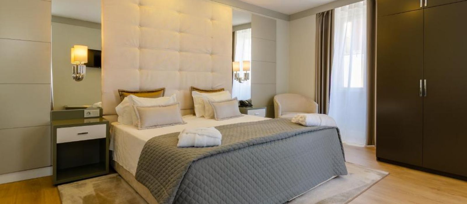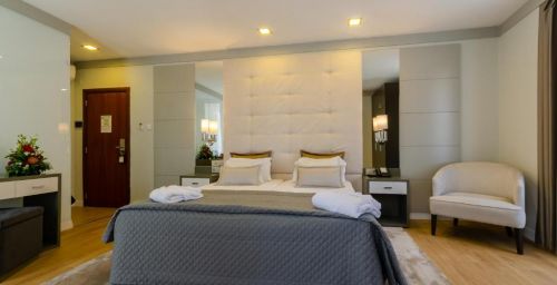 Les chambres et suites du Borges présentent la climatisation, des baies vitrées, de la moquette ainsi qu'un mobilier en bois. Toutes sont pourvues d'une salle de bains privative.