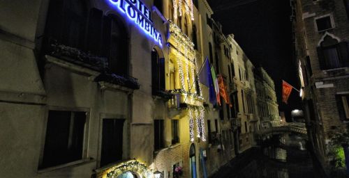 L'Hotel Colombina se trouve dans un bâtiment historique donnant sur le canal du Pont des Soupirs voisin, à seulement 100 mètres de la place Saint-Marc. Les chambres présentent une décoration vénitienne traditionnelle, avec un sol en marbre multicolore.
