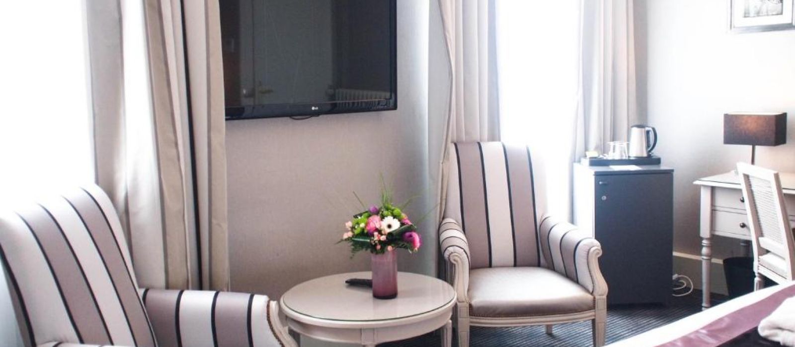 Les chambres spacieuses présentent une belle hauteur sous plafond et sont dotées de la climatisation, ainsi que d’équipements modernes, comme un plateau de courtoisie et une salle de bains privative avec douche ou baignoire. Certaines comprennent un minibar et une machine à café Nespresso.