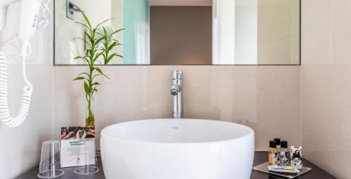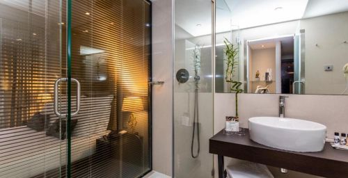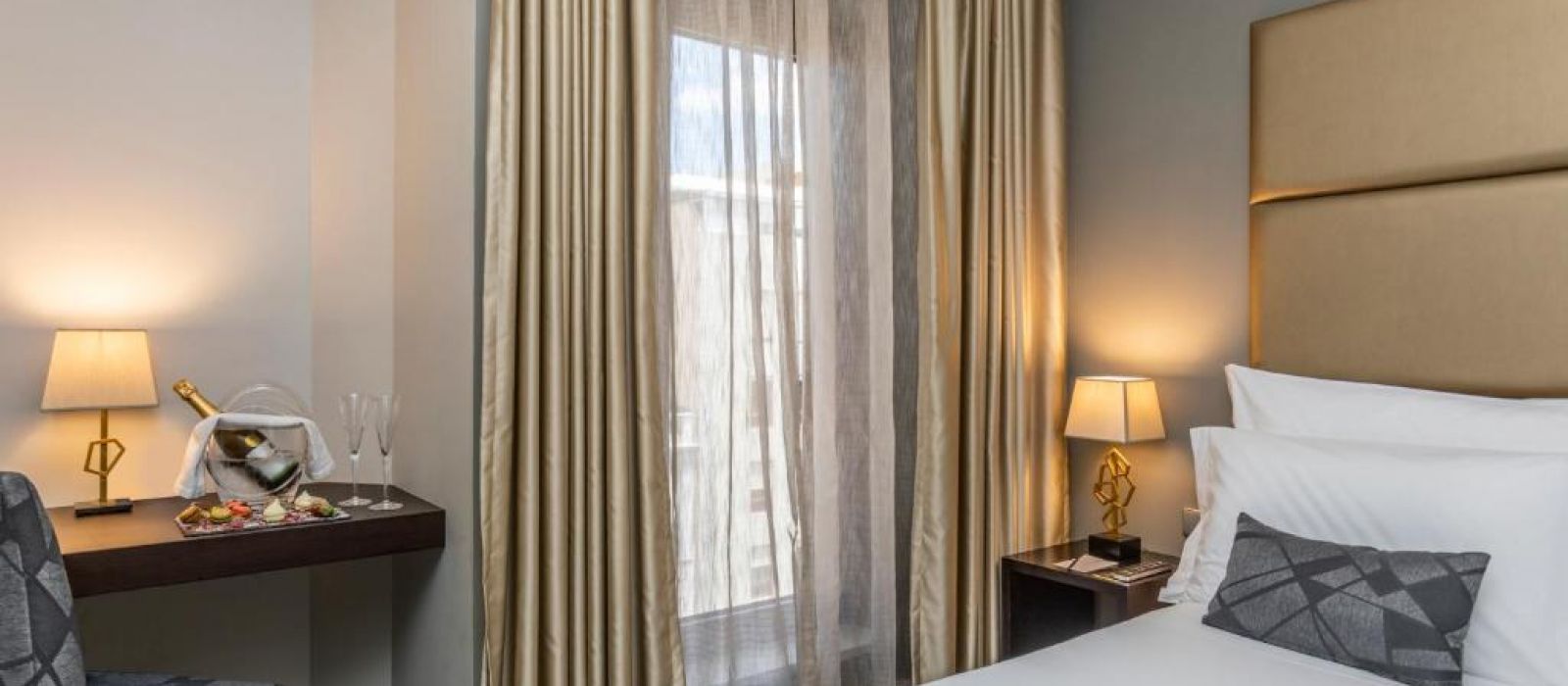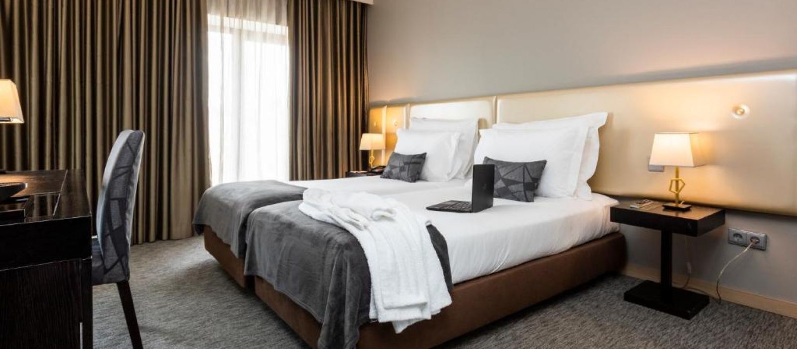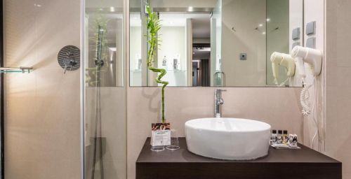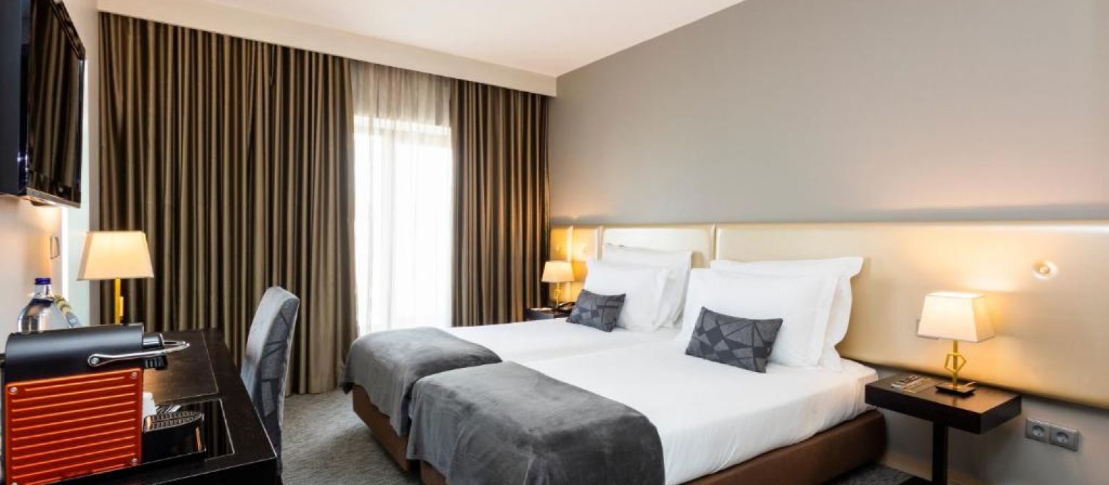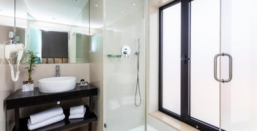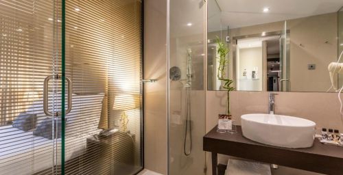 Cet hôtel possède des chambres élégantes agrémentées d'un mobilier en bois et de moquette. Chacune dispose également de la climatisation, d'une télévision par câble à écran plat, d'un bureau et d'un minibar.