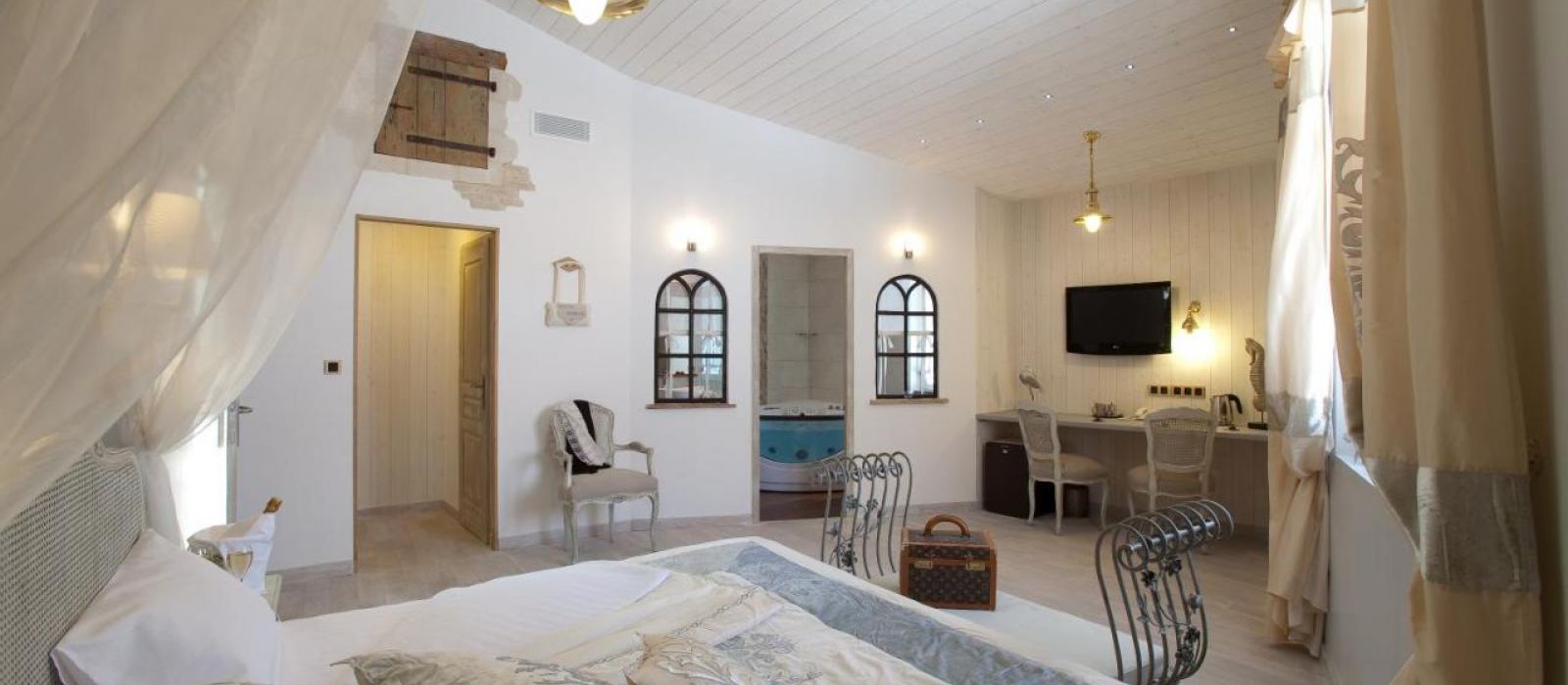 Les chambres de la Chambre d`hôte "Hôte des Portes" sont climatisées et disposent d'une télévision par satellite à écran plat.