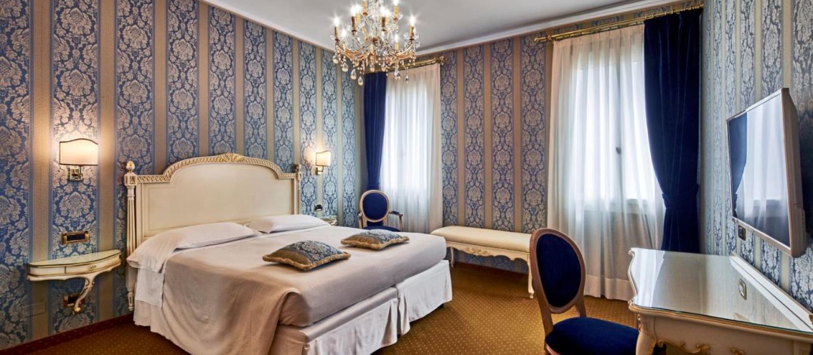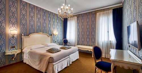 Toutes les chambres sont équipées de la climatisation, d'une salle de bains privative avec baignoire ou douche et d'une télévision. Certaines chambres comprennent en outre un mobilier d'époque et offrent une vue unique sur les toits de Venise ou sur un canal.