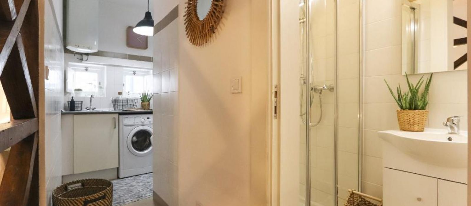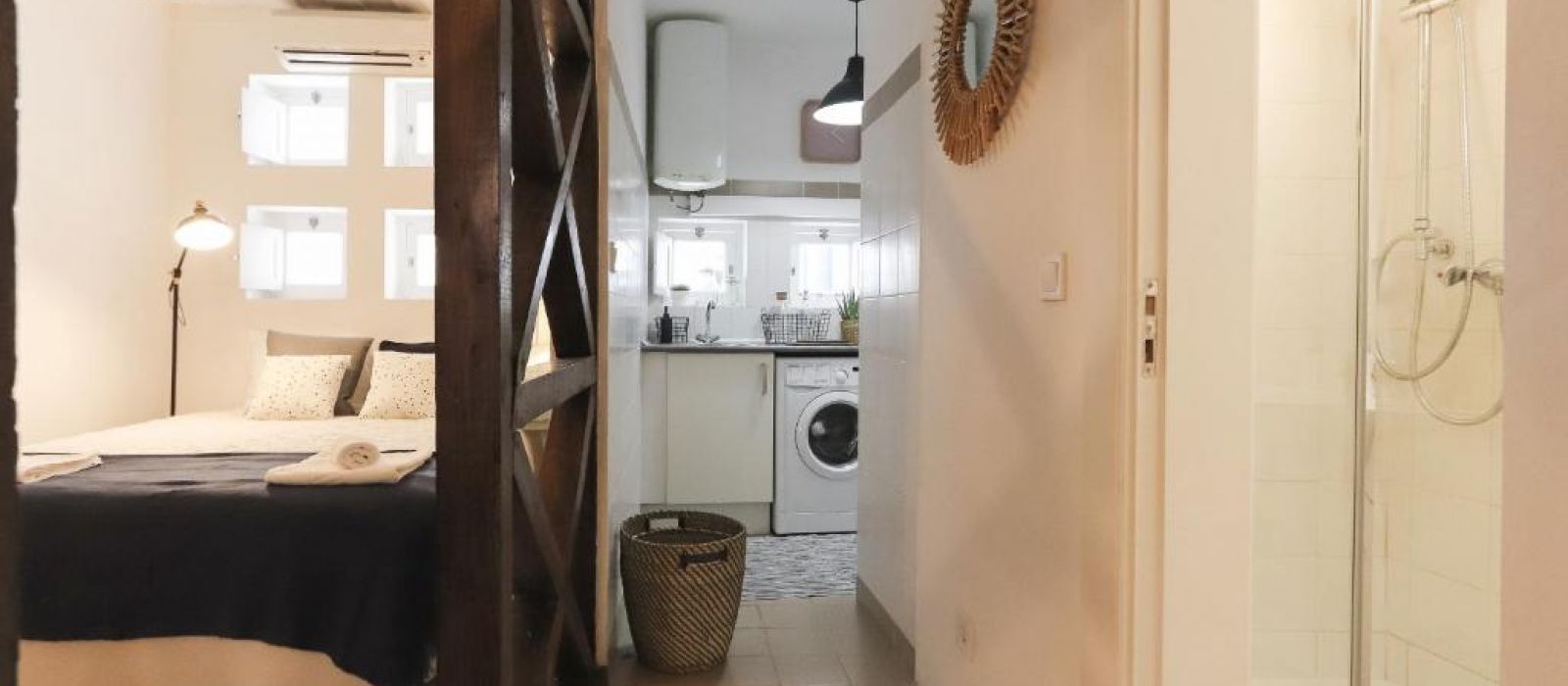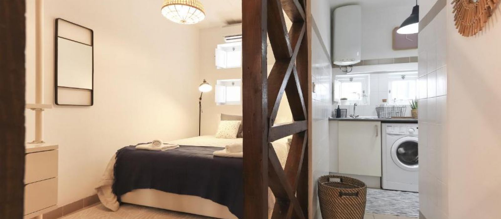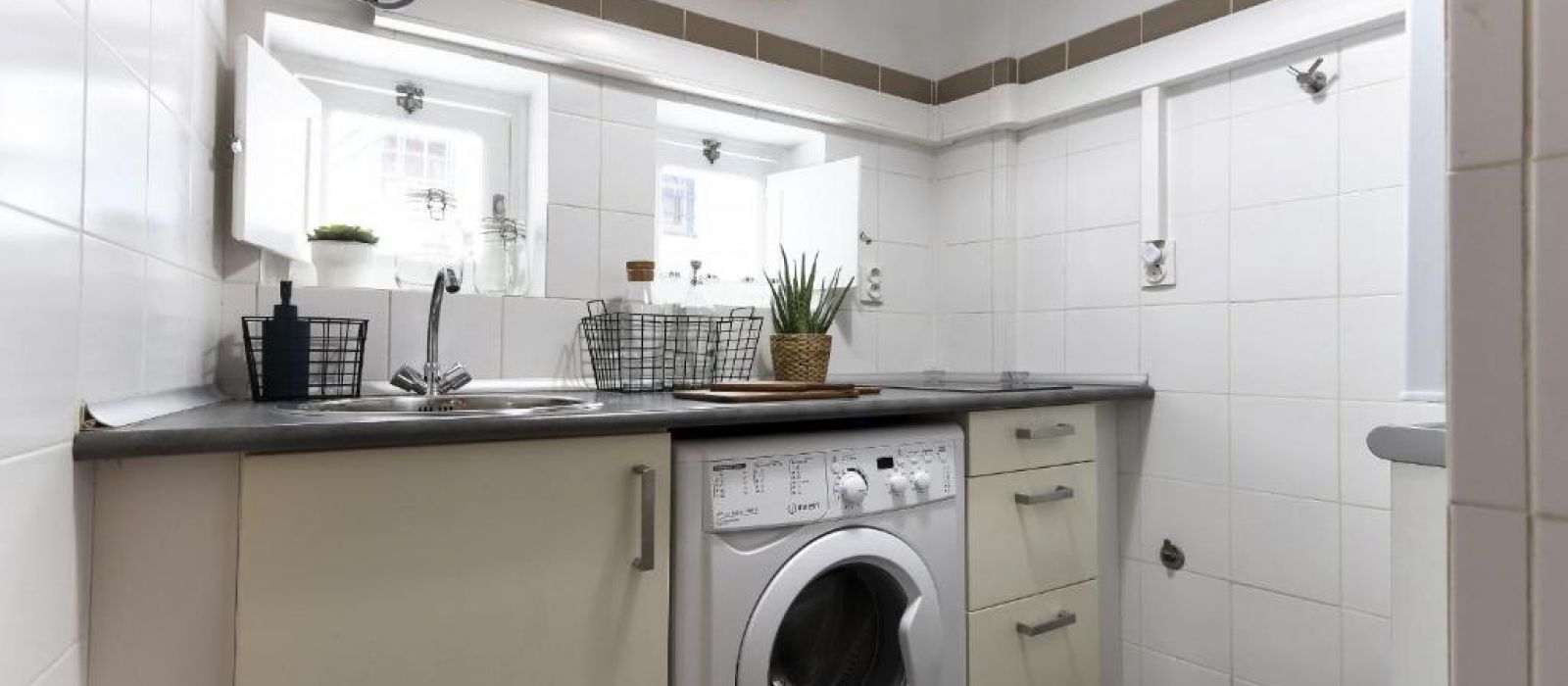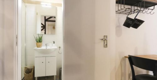 L'appartement comprend une cuisine équipée d'un four, d'un micro-ondes et d'une machine à café.