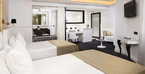 Les chambres élégantes de l’Hotel Colón Gran Meliá disposent d'une connexion Wi-Fi gratuite, d'un éclairage automatique et d'une télévision par satellite à écran plat. Les salles de bains sont pourvues d’une douche à effet pluie ou d’une baignoire et d’une sélection d'articles de toilette Clarins. Pour plus de confort, tous les lits sont équipés d’un surmatelas en plumes.