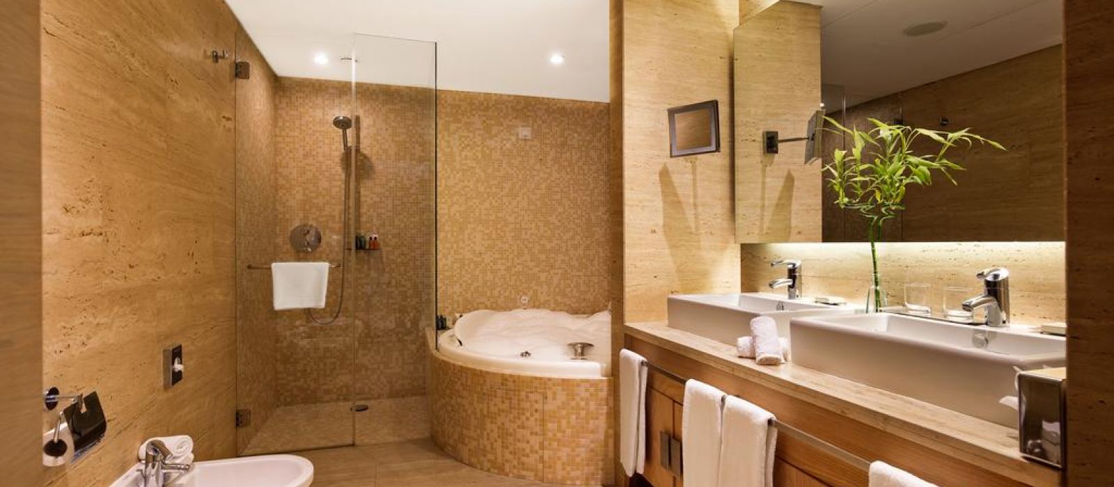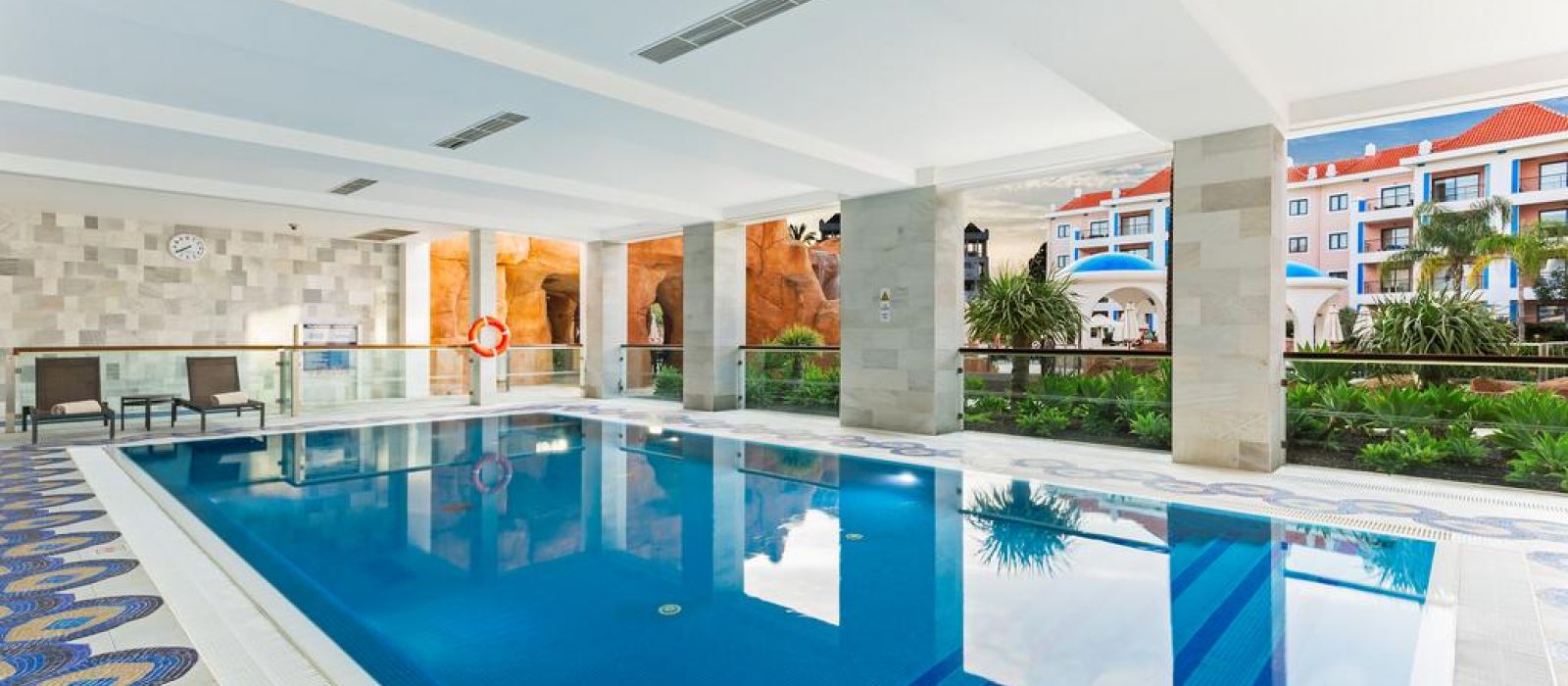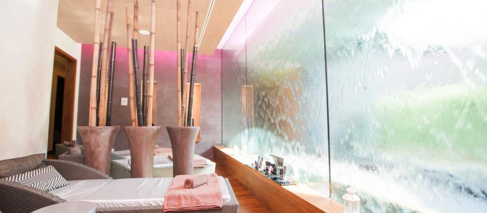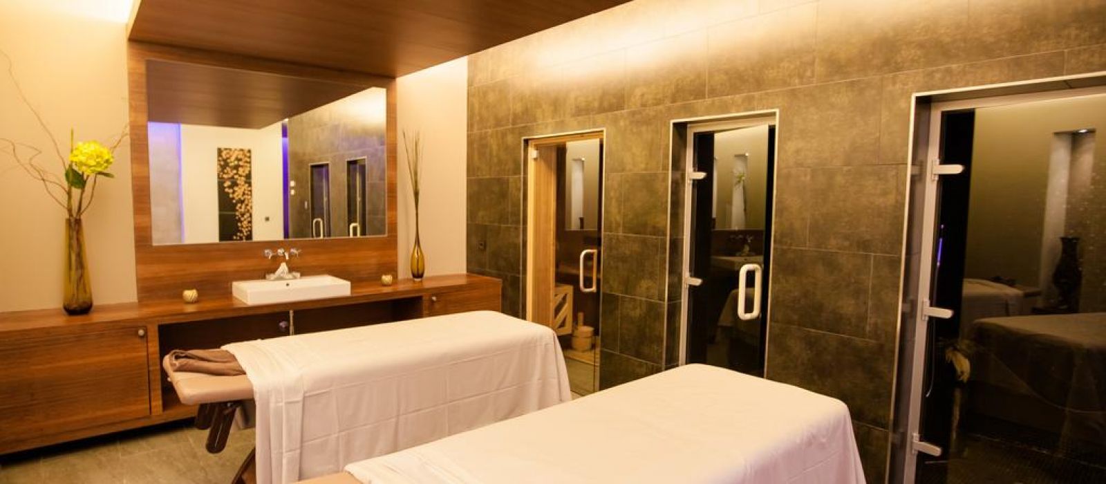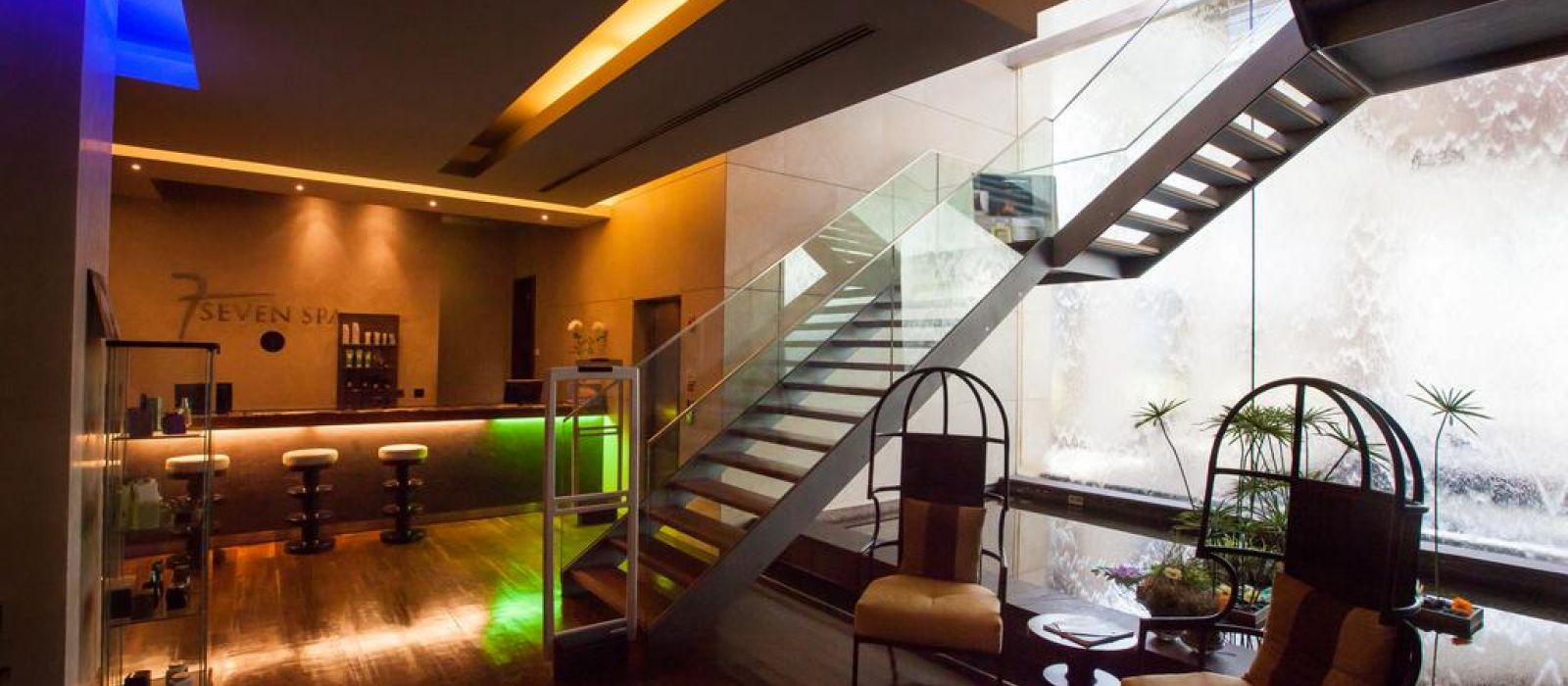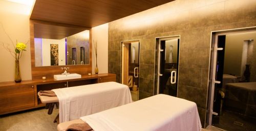 Le spa est équipé d'une salle de sport ouverte 24h/24 et d'un espace détente avec des cascades murales. Il propose des massages thérapeutiques. La piscine intérieure ressemble à des thermes romains antiques faits de mosaïques.