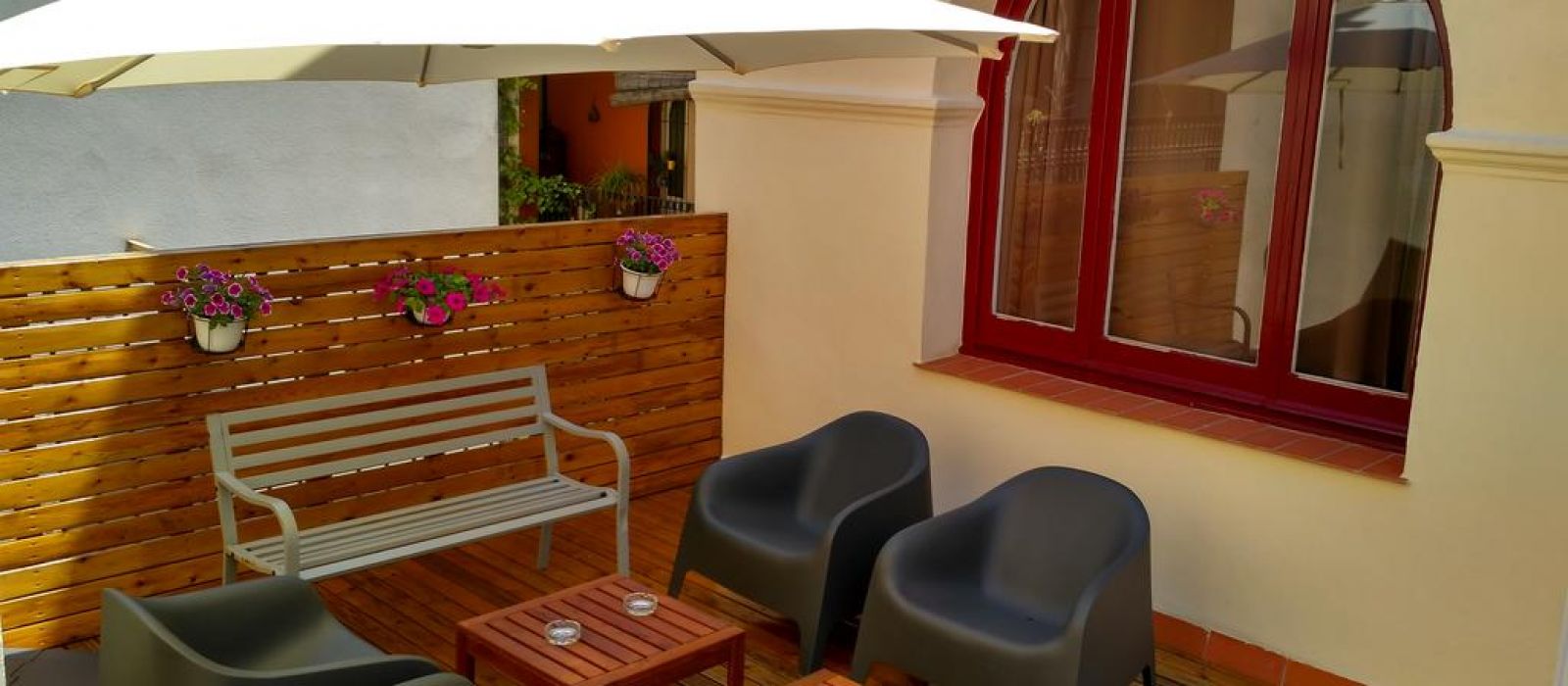 Les chambres confortables comprennent des lits très longs, un téléphone et une télévision par satellite. Vous profiterez aussi d'un salon commun et d’une terrasse.