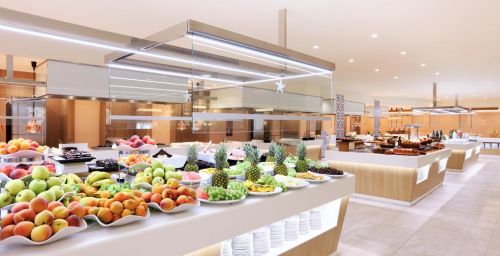 Cet établissement est pourvu de 4 bars, dont un aménagé au bord de la piscine, et d'un bar-salon avec terrasse offrant une vue sur la mer. Sur place, le restaurant buffet sert des spécialités espagnoles et des plats internationaux.