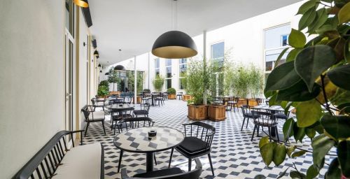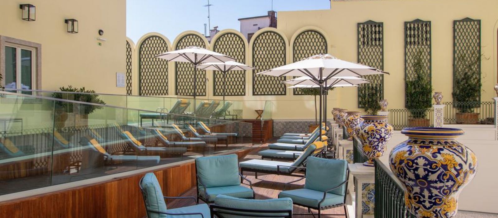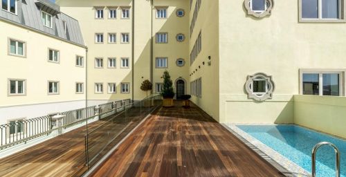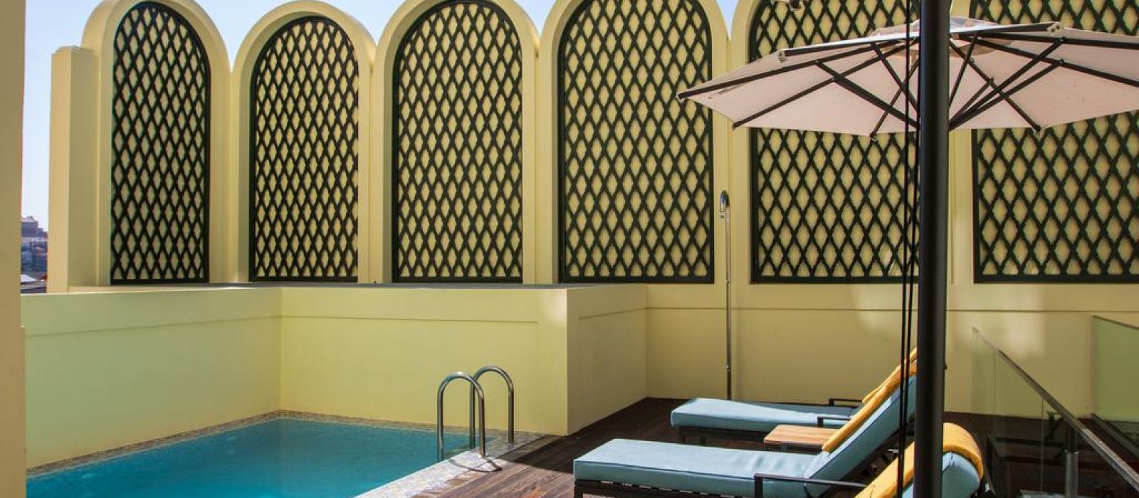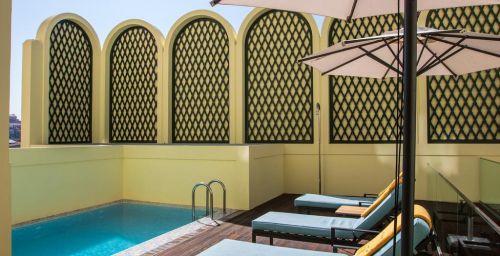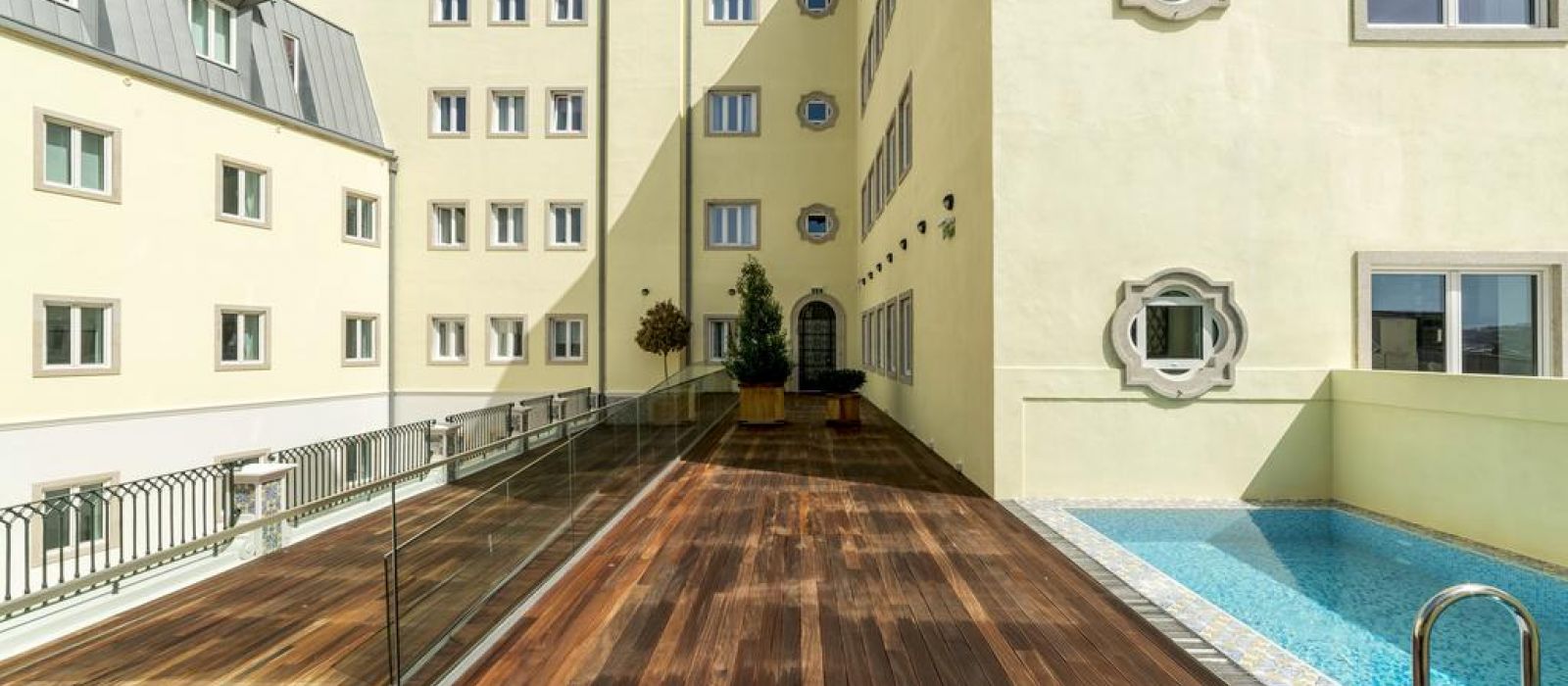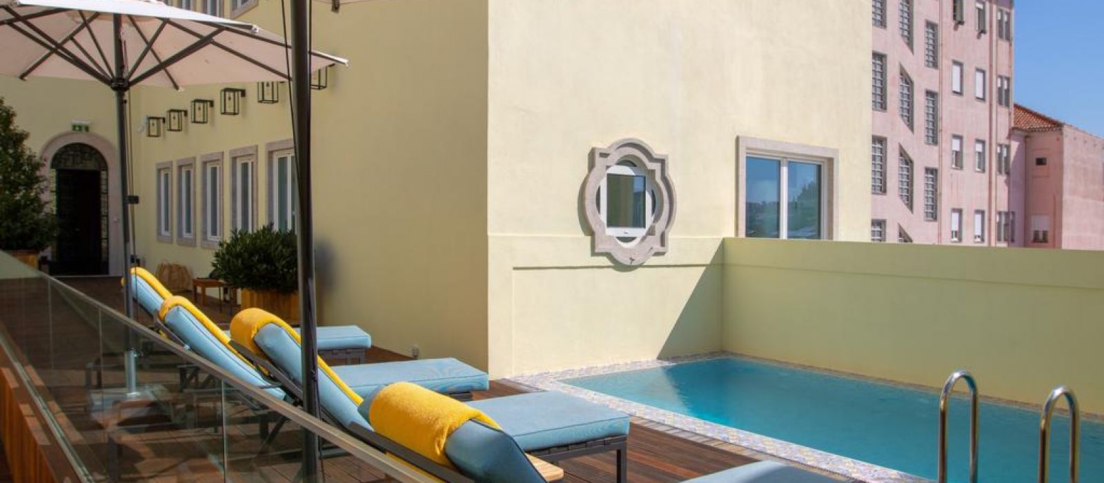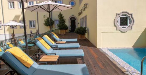 Cet hôtel historique possède également une terrasse bien exposée avec un bassin profond et des chaises longues.