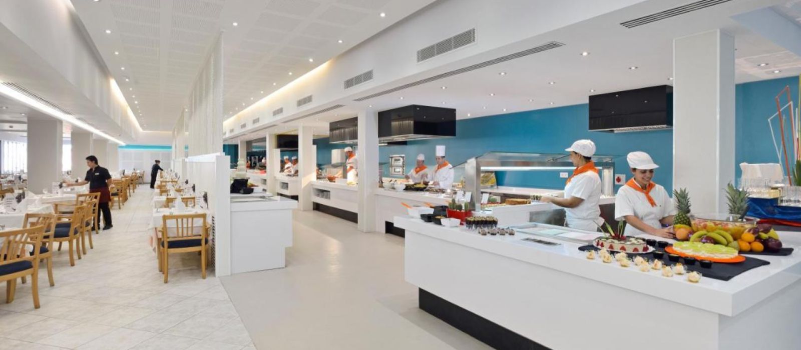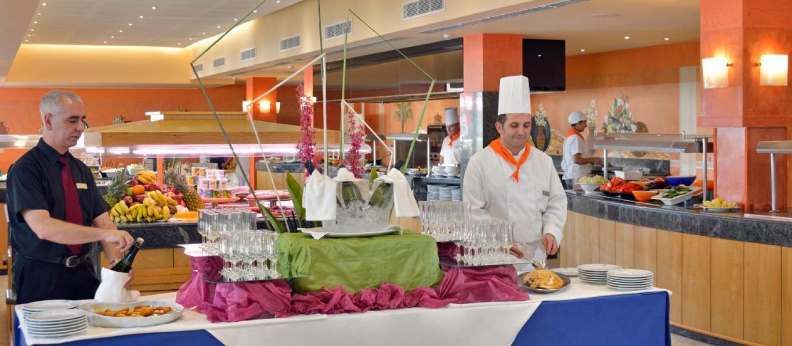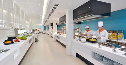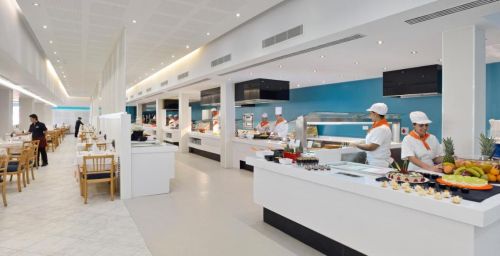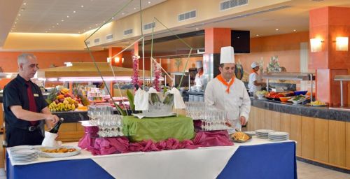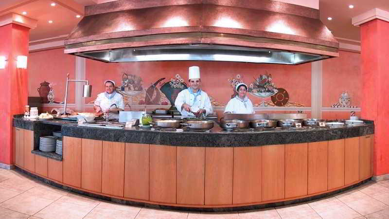Un petit-déjeuner buffet est servi sur la grande terrasse de l'établissement, tandis que le restaurant organise des dîners à thèmes, une fois par semaine. Dans le complexe, vous trouverez 3 bars à côté des piscines, où vous pourrez prendre des collations.