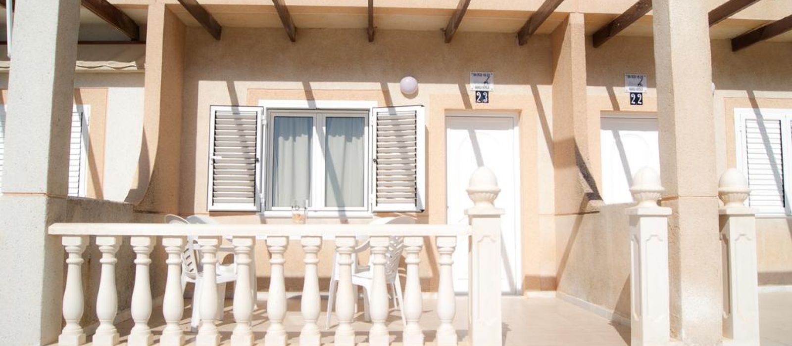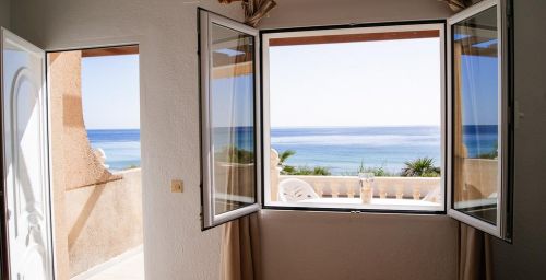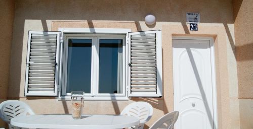 Situés dans un environnement paisible, les logements sont idéals pour les familles et offrent de superbes vues sur la mer depuis leur balcon privé. Chaque appartement en duplex dispose d'un salon/salle à manger, d'un cabinet de toilette, d'une cuisine entièrement équipée et d'une terrasse au rez-de-chaussée. Au 1er étage, vous trouverez 2 chambres doubles avec un lit d'appoint, une salle de bains et un balcon.
