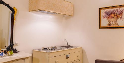 Présentant une décoration aux tons ocres avec un mobilier élégant et du parquet, les suites sont spacieuses et disposent de la climatisation ainsi que d'une kitchenette entièrement équipée. Un petit-déjeuner buffet est servi dans la salle de l'hôtel prévue à cet effet.