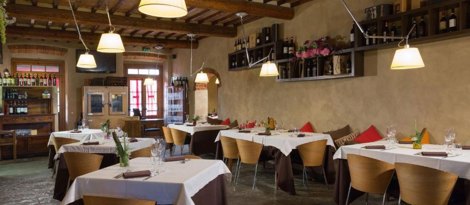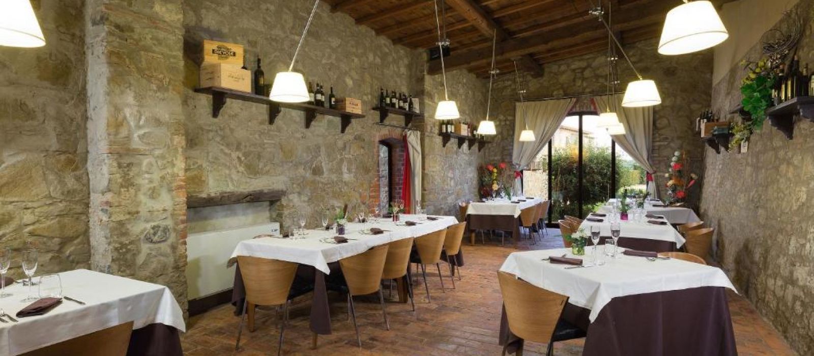 Le restaurant L'Angolo delle Capanne sert des pâtes faites maison et de la viande produite localement, accompagnée de vins régionaux. En été, les repas sont servis à l'extérieur sous les arcades en pierre.