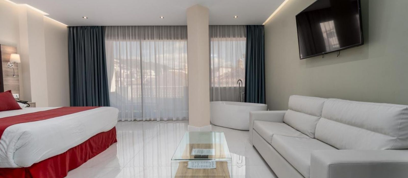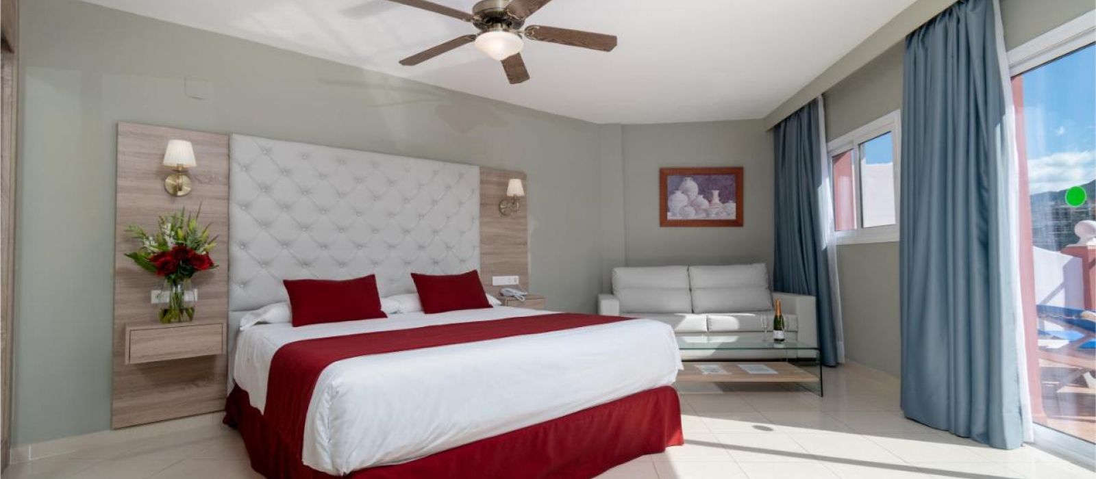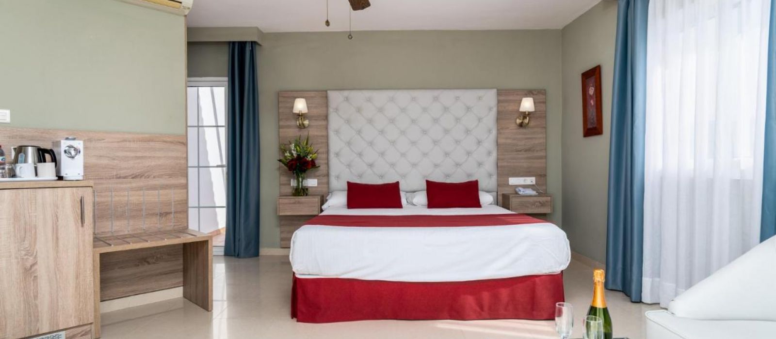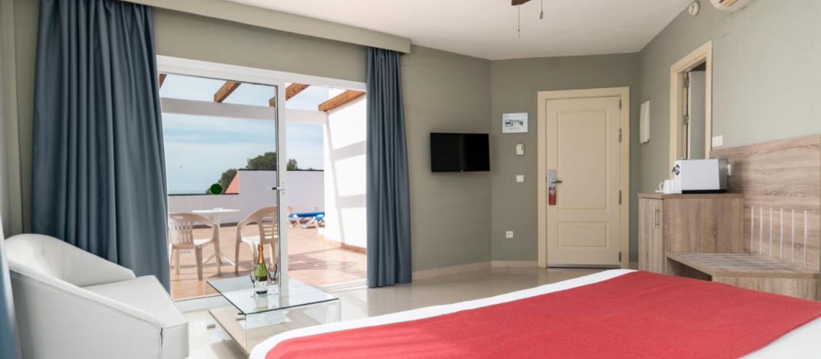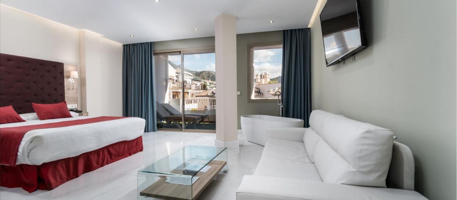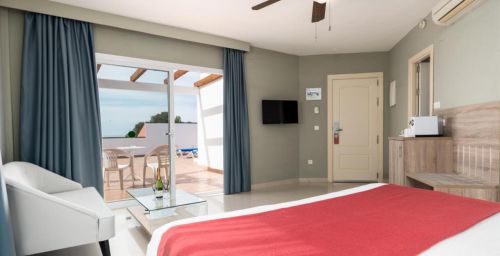 Les chambres comprennent également la télévision par satellite et un service de location de DVD gratuit. Elles offrent une vue sur la mer, les montagnes ou la piscine.