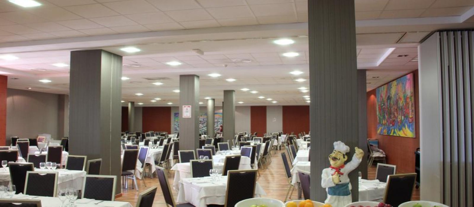 L'établissement dispose d'un restaurant buffet servant des plats méditerranéens. L'hôtel possède également une cafétéria pour les collations et un bar avec une grande terrasse. La discothèque propose des concerts.