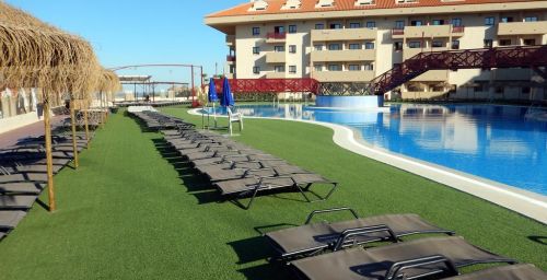Situé à Mazagón, sur la côte andalouse, l'Ohtels Mazagon dispose d'une piscine commune extérieure avec une terrasse offrant une vue panoramique sur la mer. Vous y trouverez également un court de tennis et un parcours de minigolf.