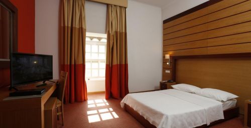 Les chambres décorées de façon personnalisée de l'Hotel Palácio dos Melos sont luxueusement meublées. Toutes disposent de la climatisation, de la télévision par satellite et d'un bureau.