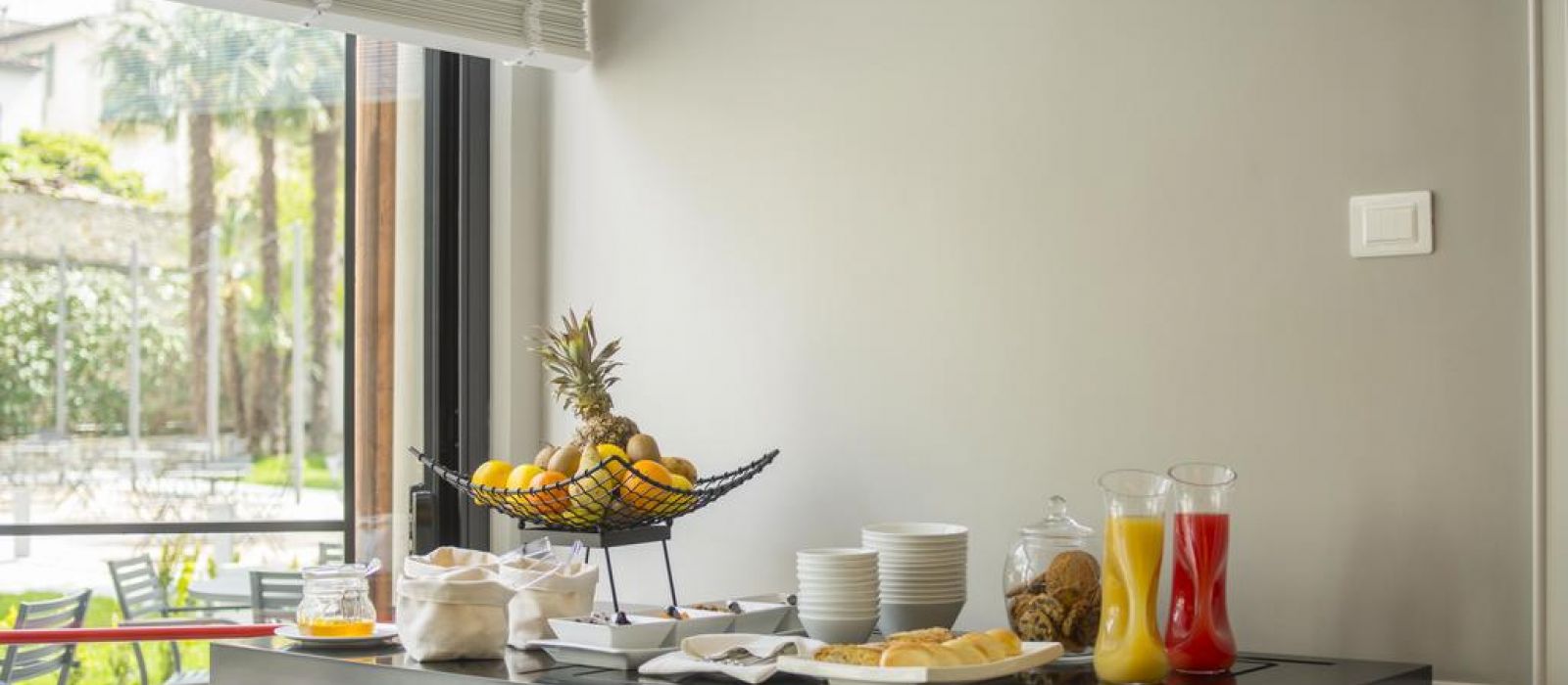 Tous les matins, vous pourrez savourer un petit-déjeuner italien sucré, composé de fruits frais et de croissants italiens. La salle à manger du restaurant donne sur le jardin et, par beau temps, vous aurez la possibilité de prendre votre petit-déjeuner dehors.