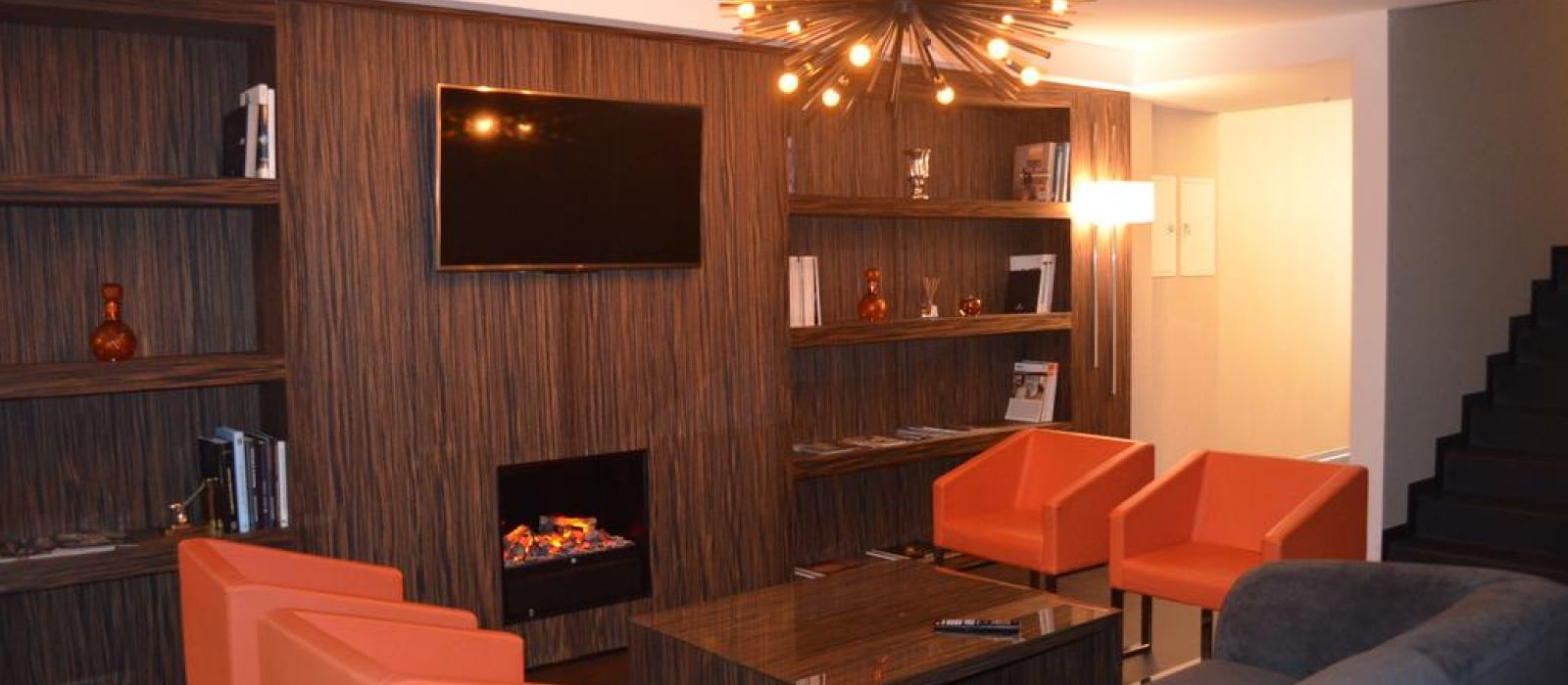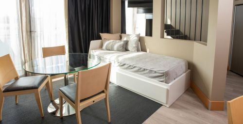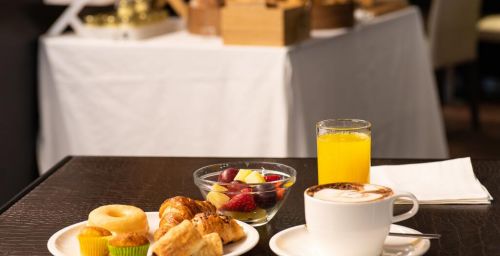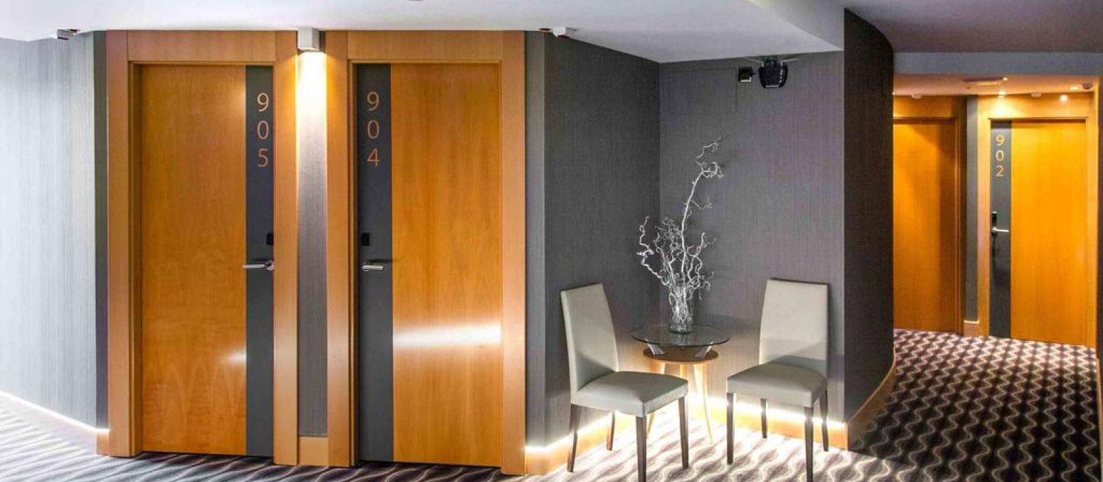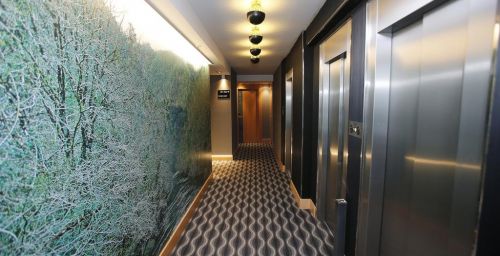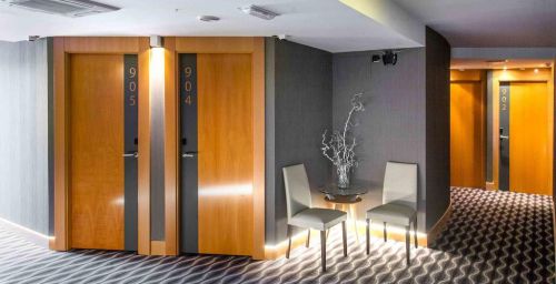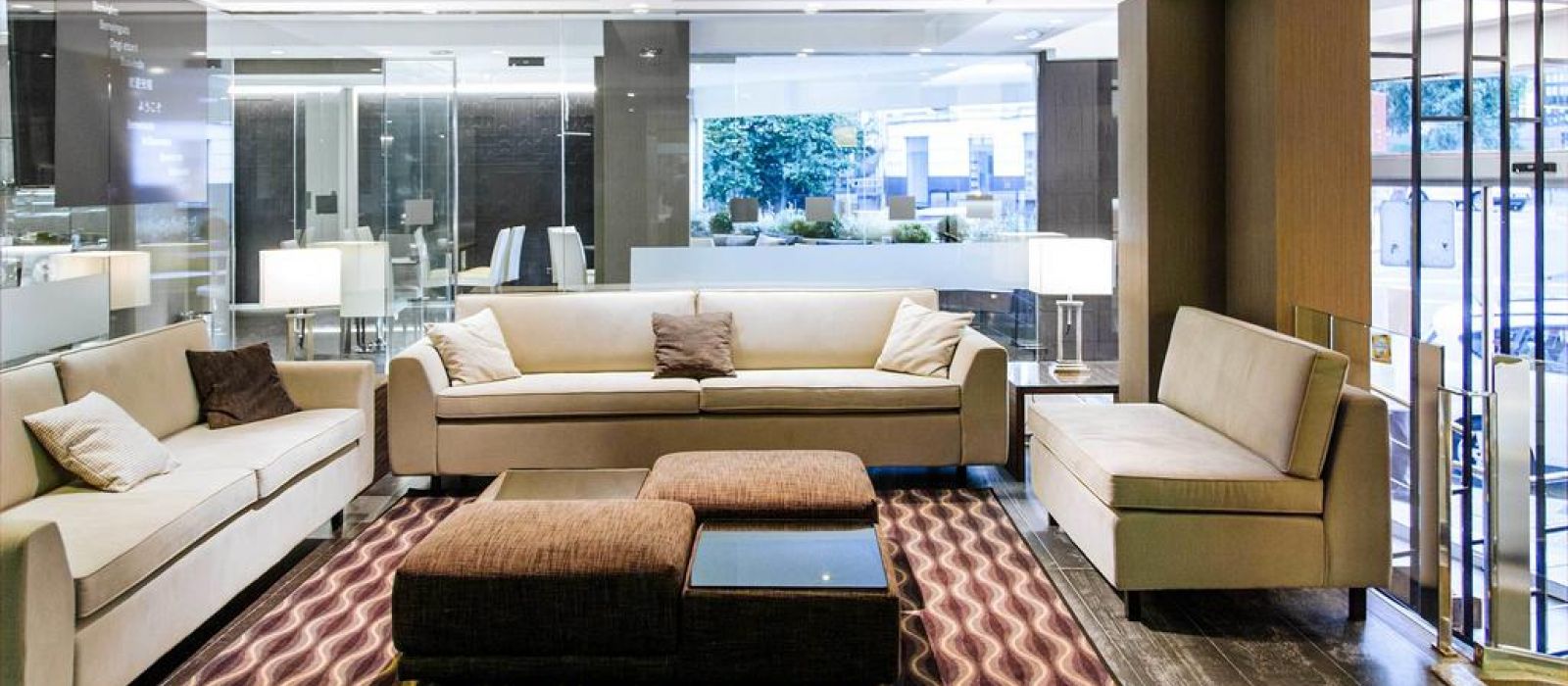 Les intérieurs de l'hôtel Plaza sont modernes et minimalistes, mettant l'accent sur des bois clairs et des accessoires chromés. Les chambres sont baignées de lumière naturelle grâce à leurs grandes fenêtres.
