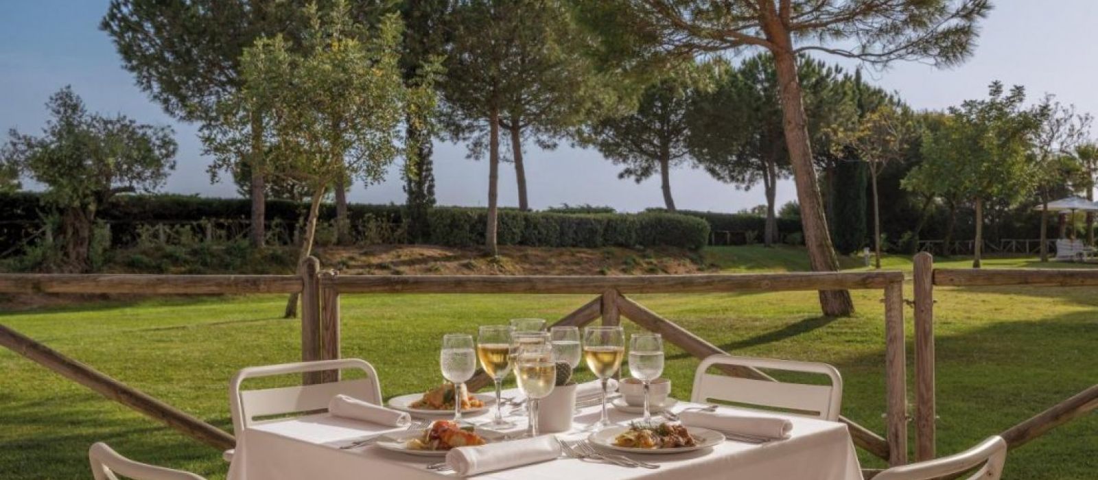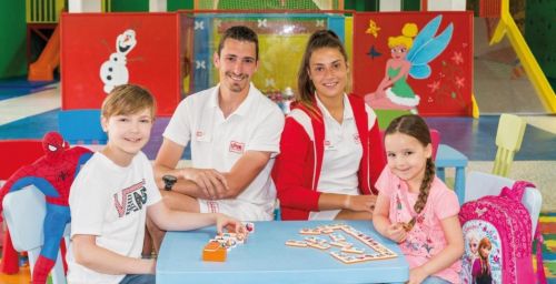 Les superbes installations extérieures comprennent une piscine, un bassin pour enfants ainsi qu'une terrasse avec chaises longues et parasols. Un terrain de football et un court de tennis sont mis à la disposition des sportifs. Il y a un parcours de golf à 200 m de l'établissement. Un programme varié d'animations complète les prestations.