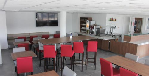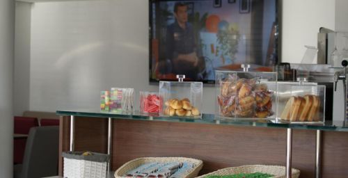 Un petit-déjeuner buffet est servi tous les matins. Plusieurs restaurants sont également installés à proximité, à la sortie de l'autoroute.