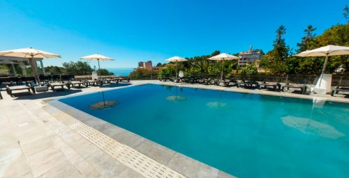 Le complexe dispose d'une piscine en plein air avec solarium, chaises longues et parasols.