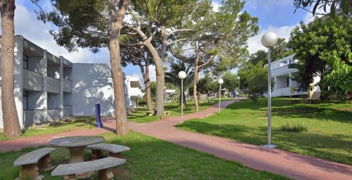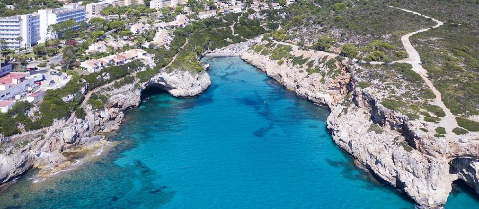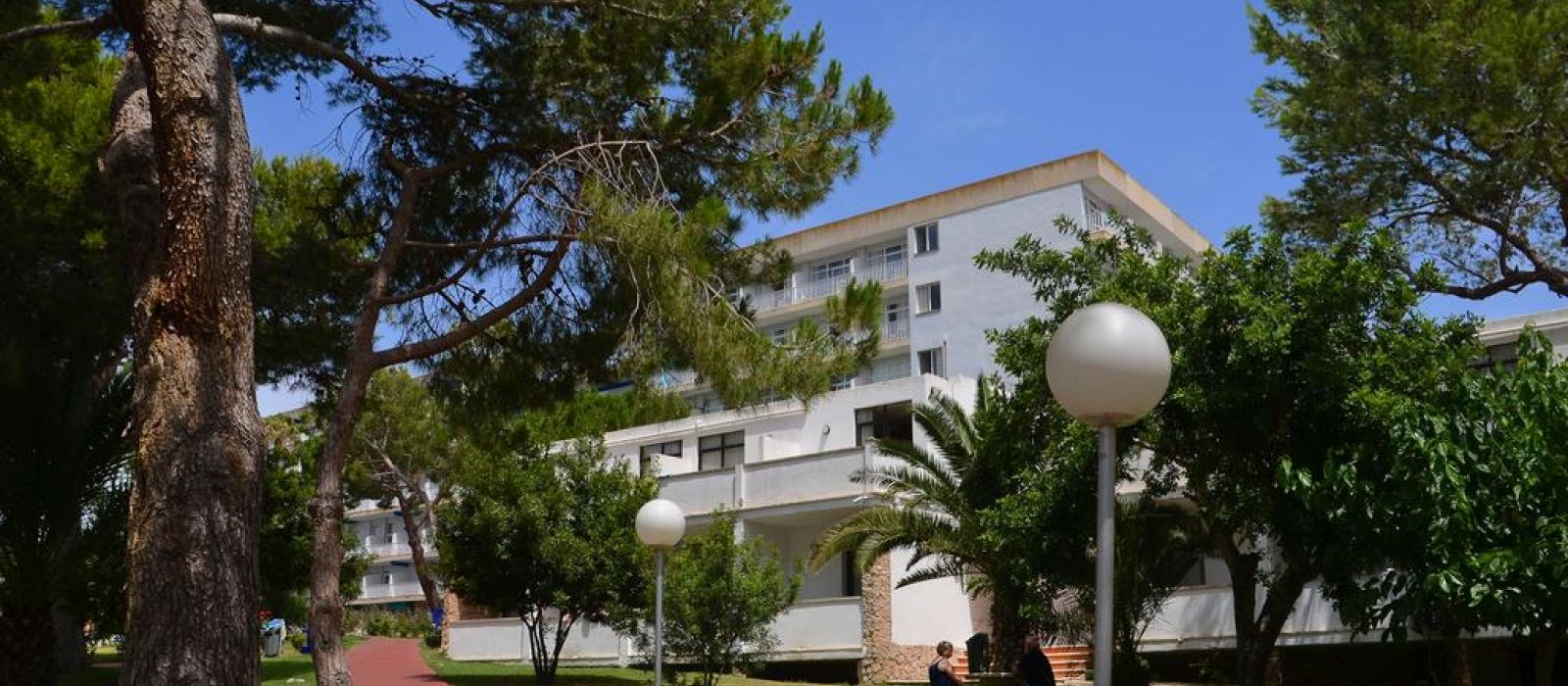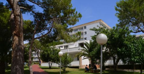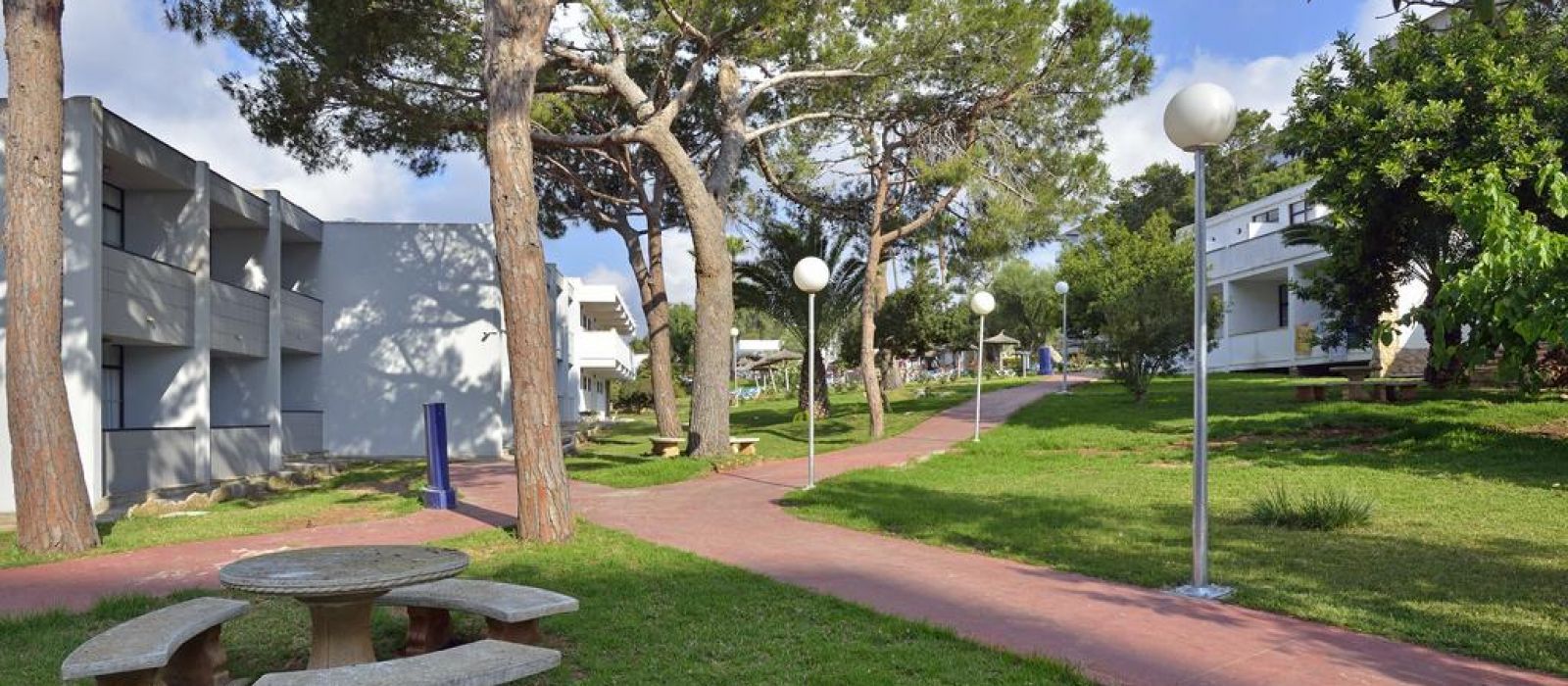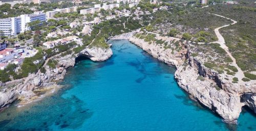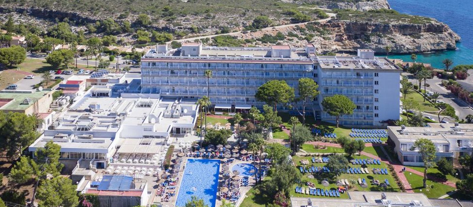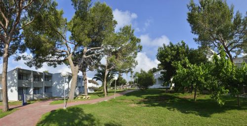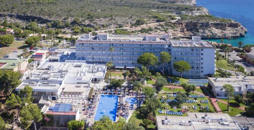 Les bâtiments de l'établissement sont situés entre les plages de sable doré de Cala Domingos et Cala Antena.