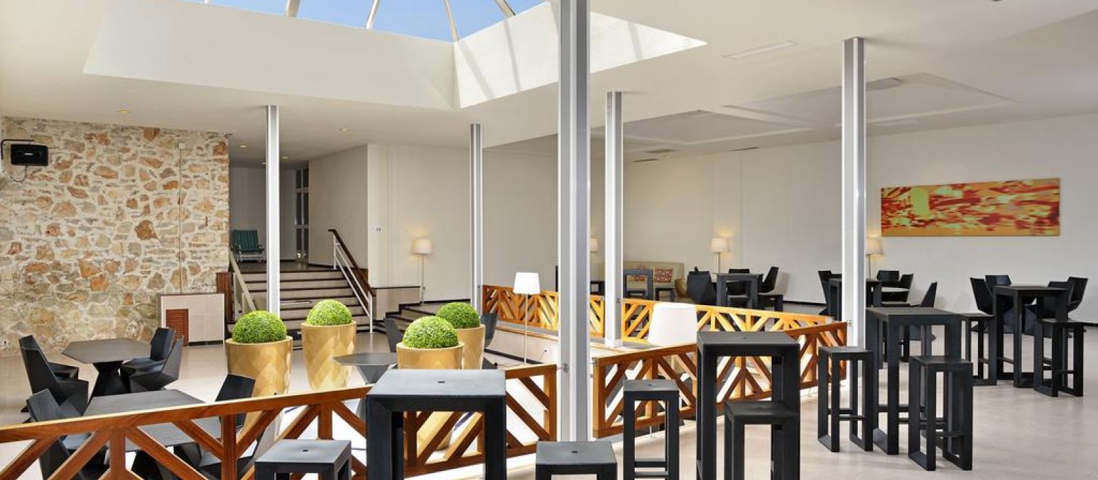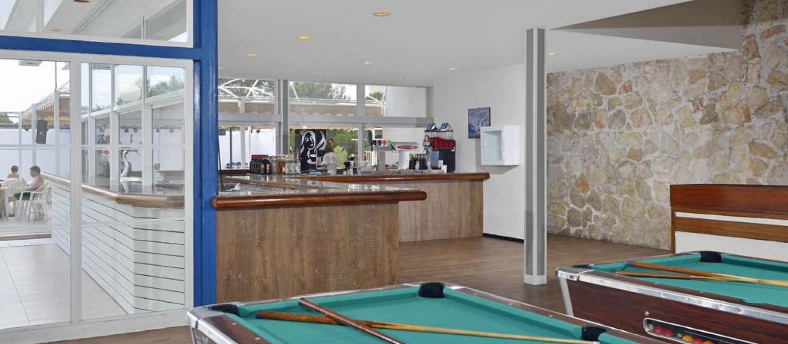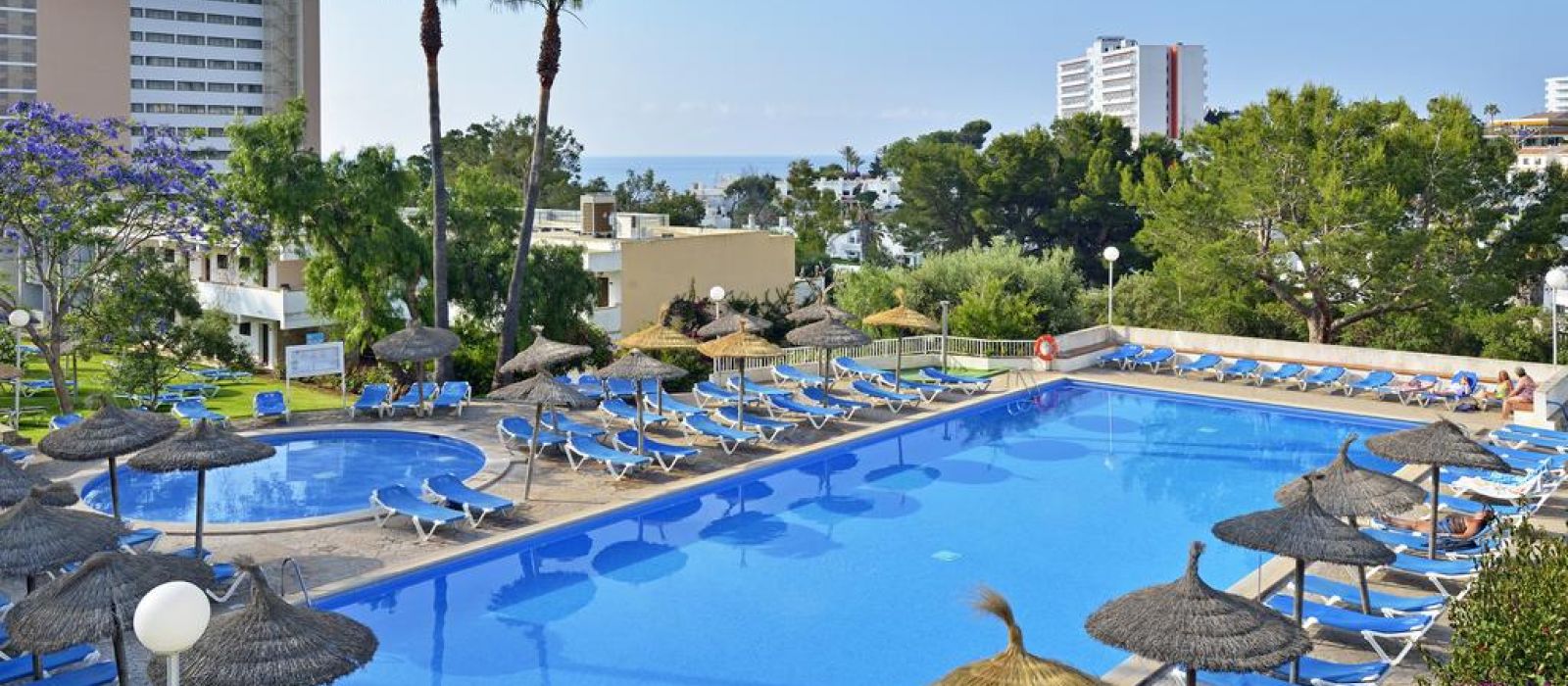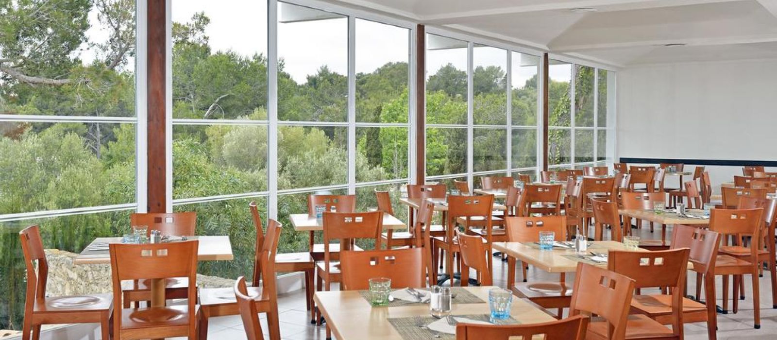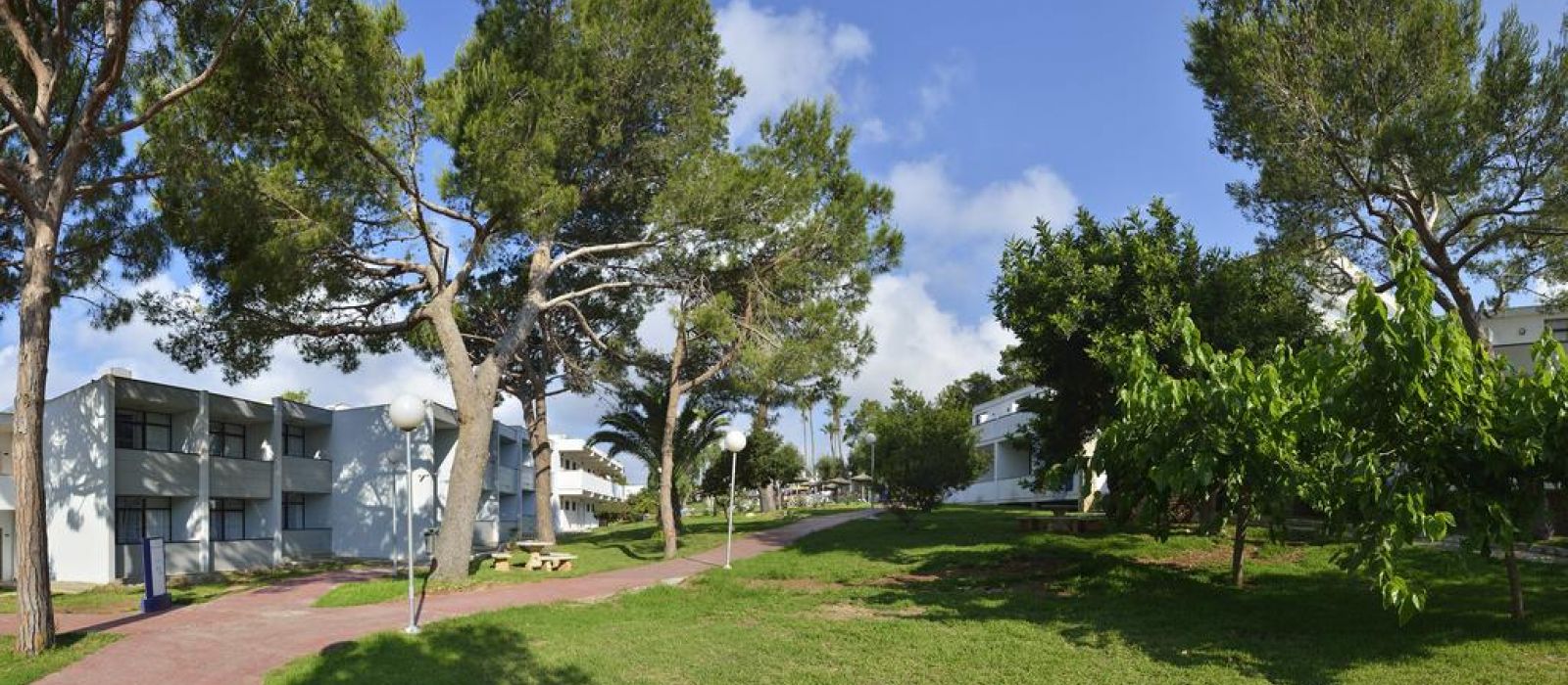 Les bâtiments de l'établissement sont situés entre les plages de sable doré de Cala Domingos et Cala Antena.