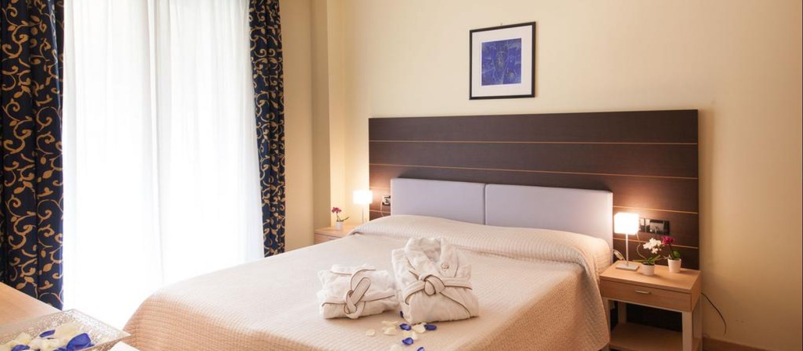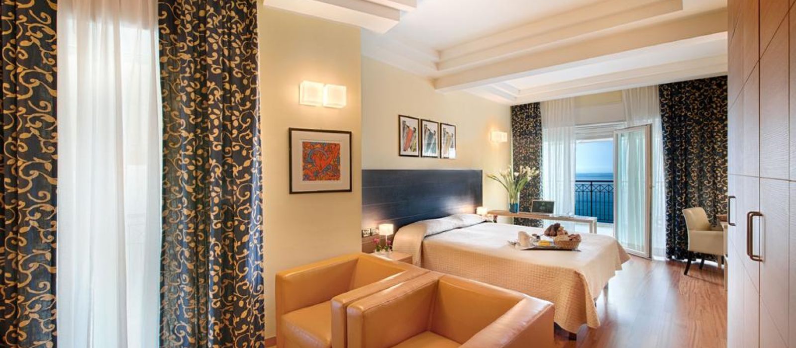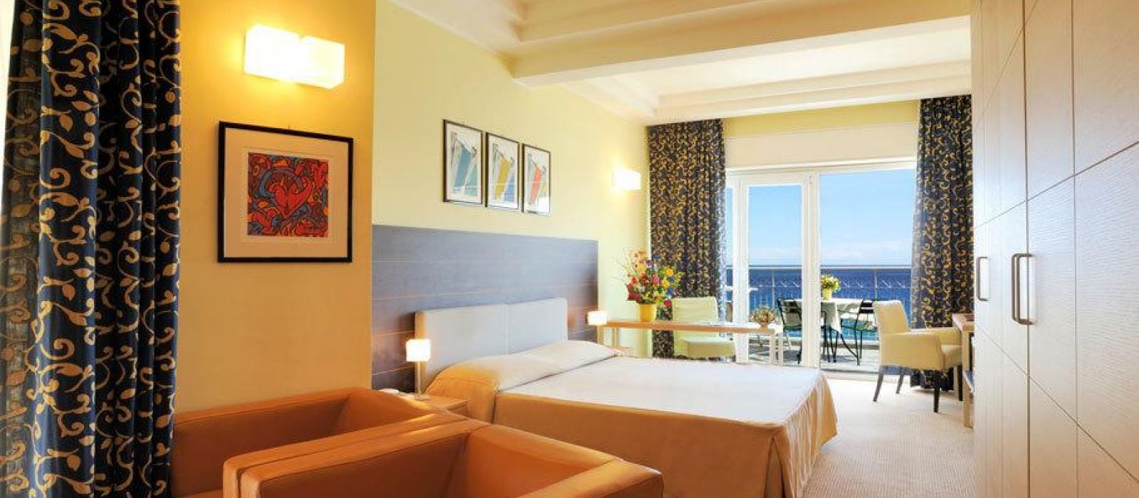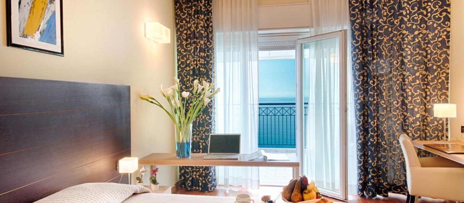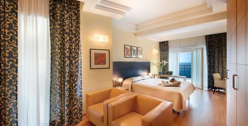Modernes et élégamment décorées, toutes les chambres sont pourvues d'un mobilier raffiné et de rideaux contemporains. Elles sont également équipées de la climatisation, d'une télévision par satellite à écran plat ainsi que d'une salle de bains privative munie d'articles de toilette. Certaines chambres comportent un balcon privé. D'autres offrent une vue sur la mer.