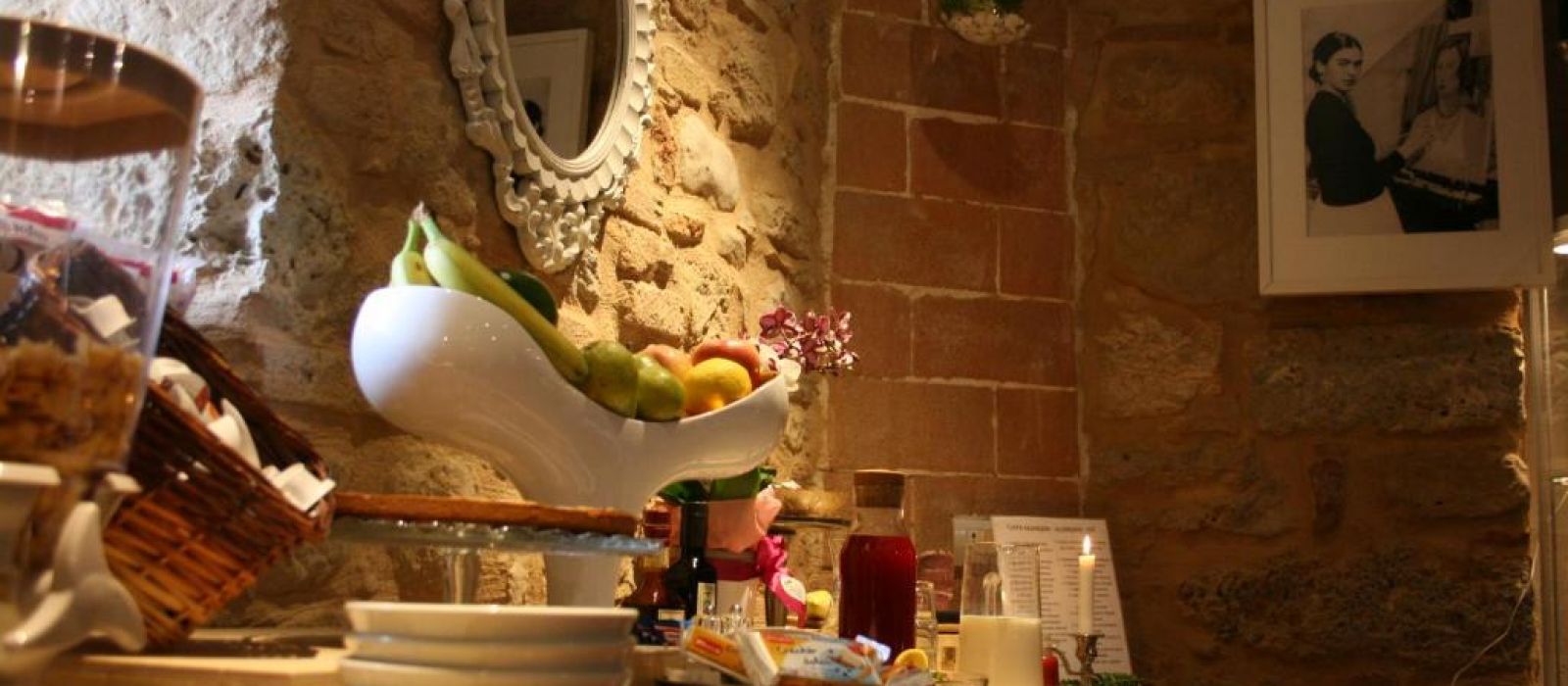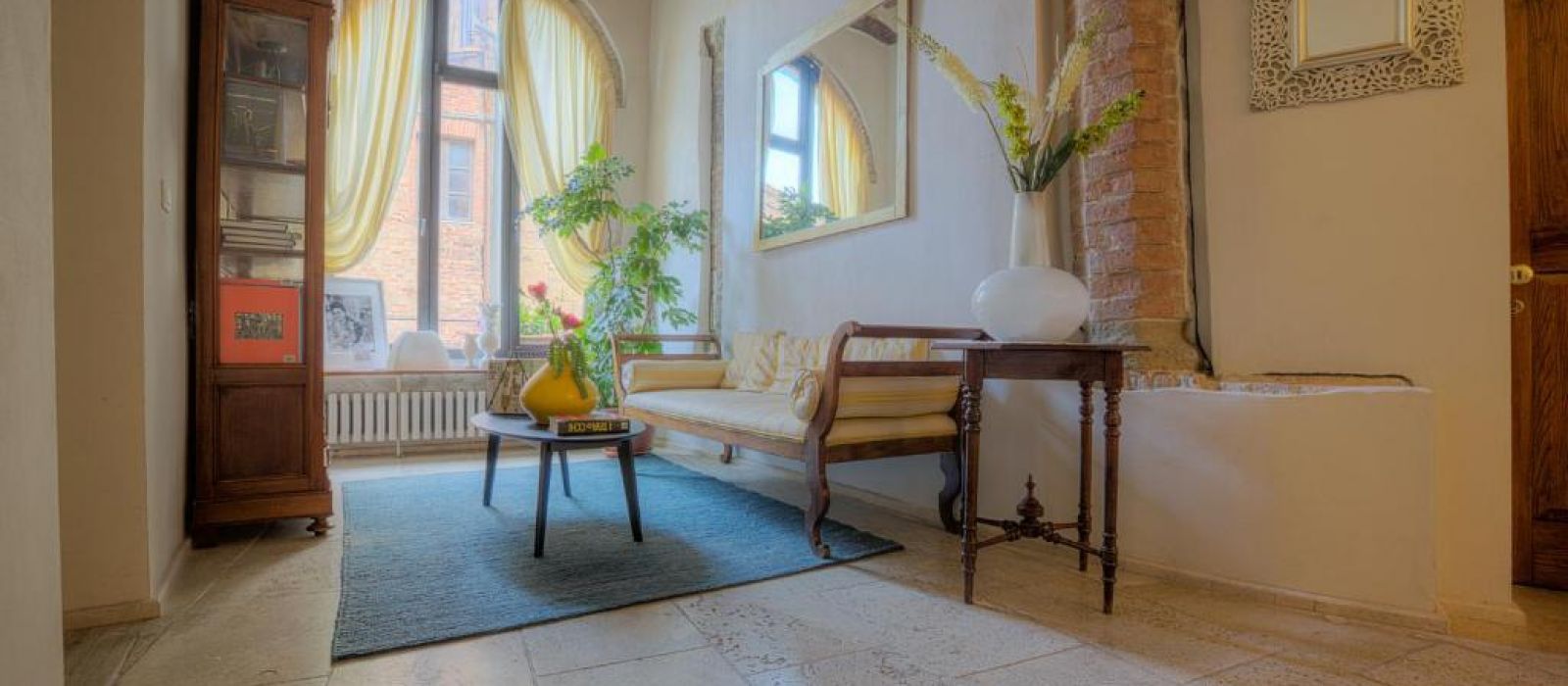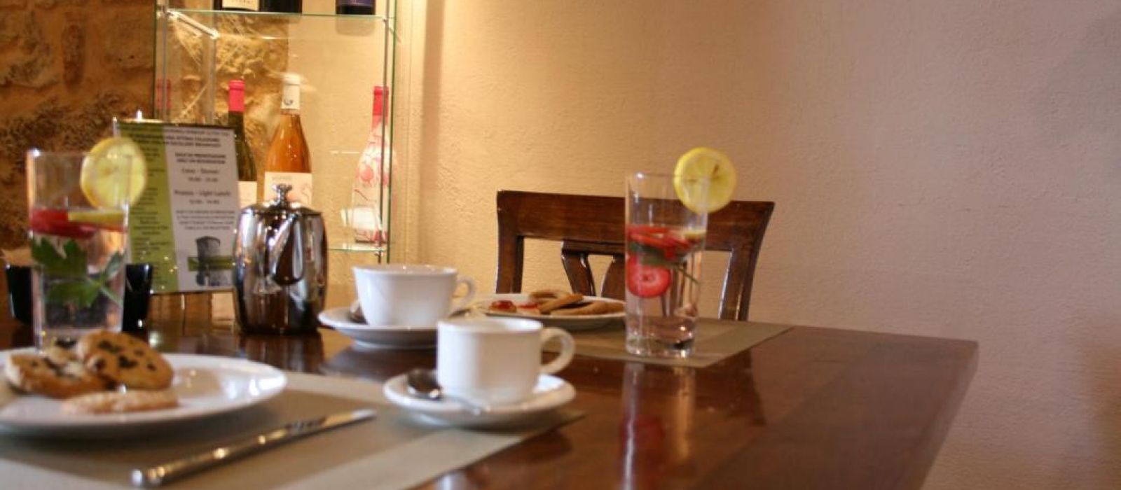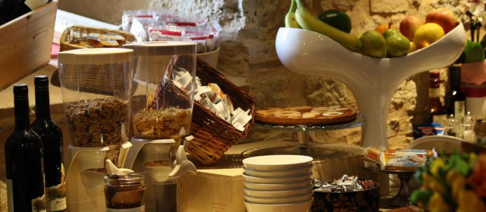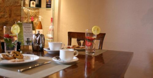 Le deuxième étage du Torre dei Serviti comprend un salon avec cheminée, un bar et une petite terrasse panoramique. Le petit-déjeuner buffet est servi dans une salle à manger lumineuse.