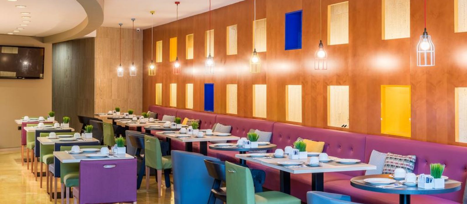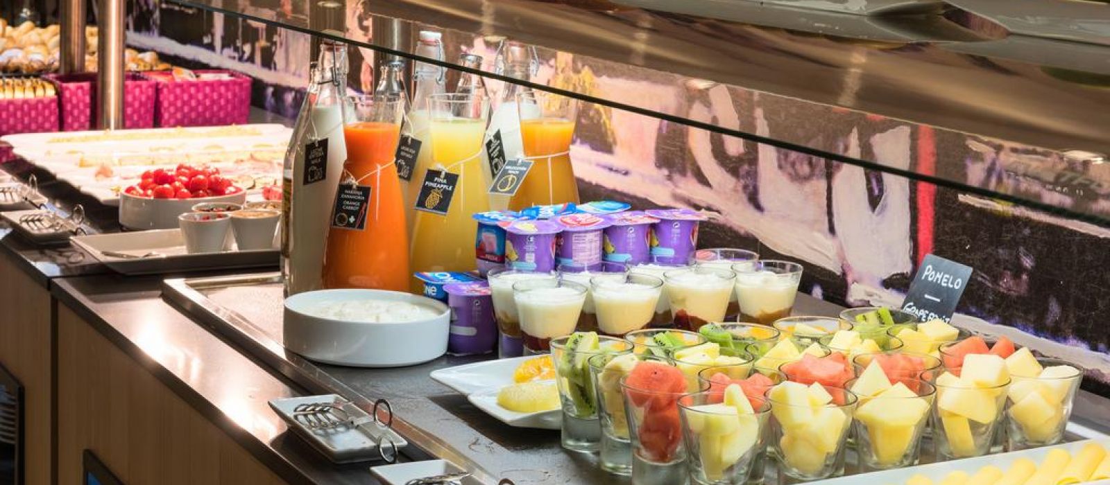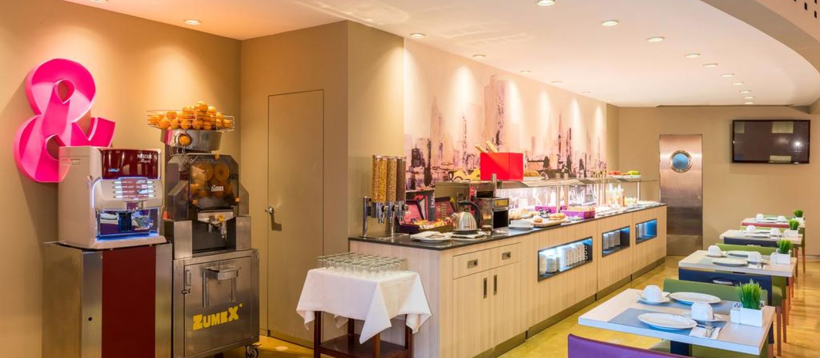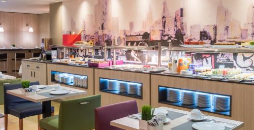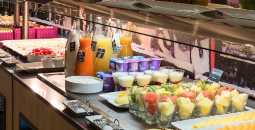 Le bar restaurant sur place sert une cuisine méditerranéenne. Un petit-déjeuner buffet varié, composé de produits sans gluten, est préparé tous les matins. L'établissement possède également un snack-bar.