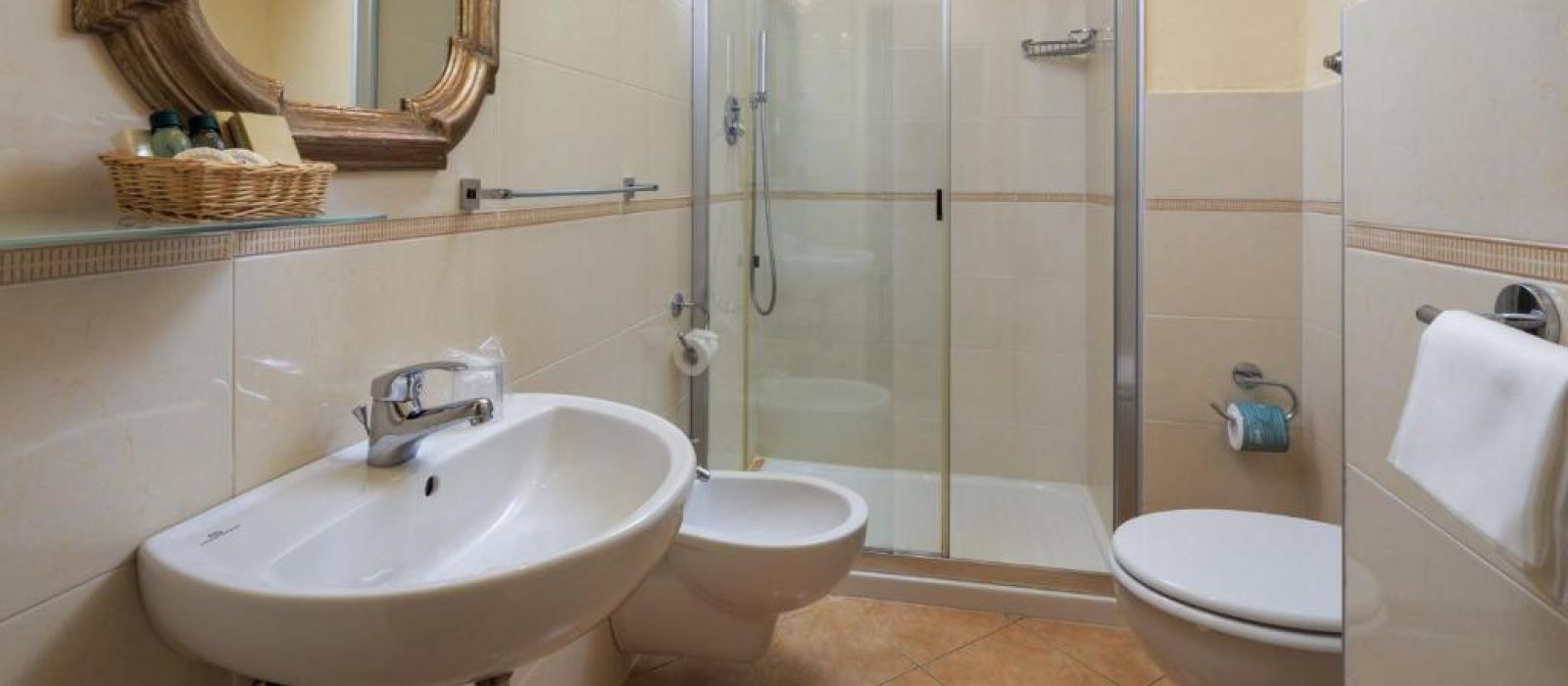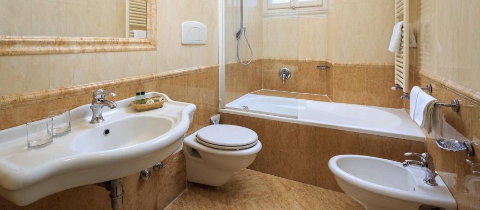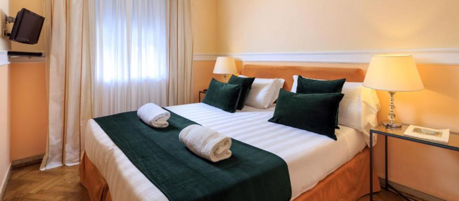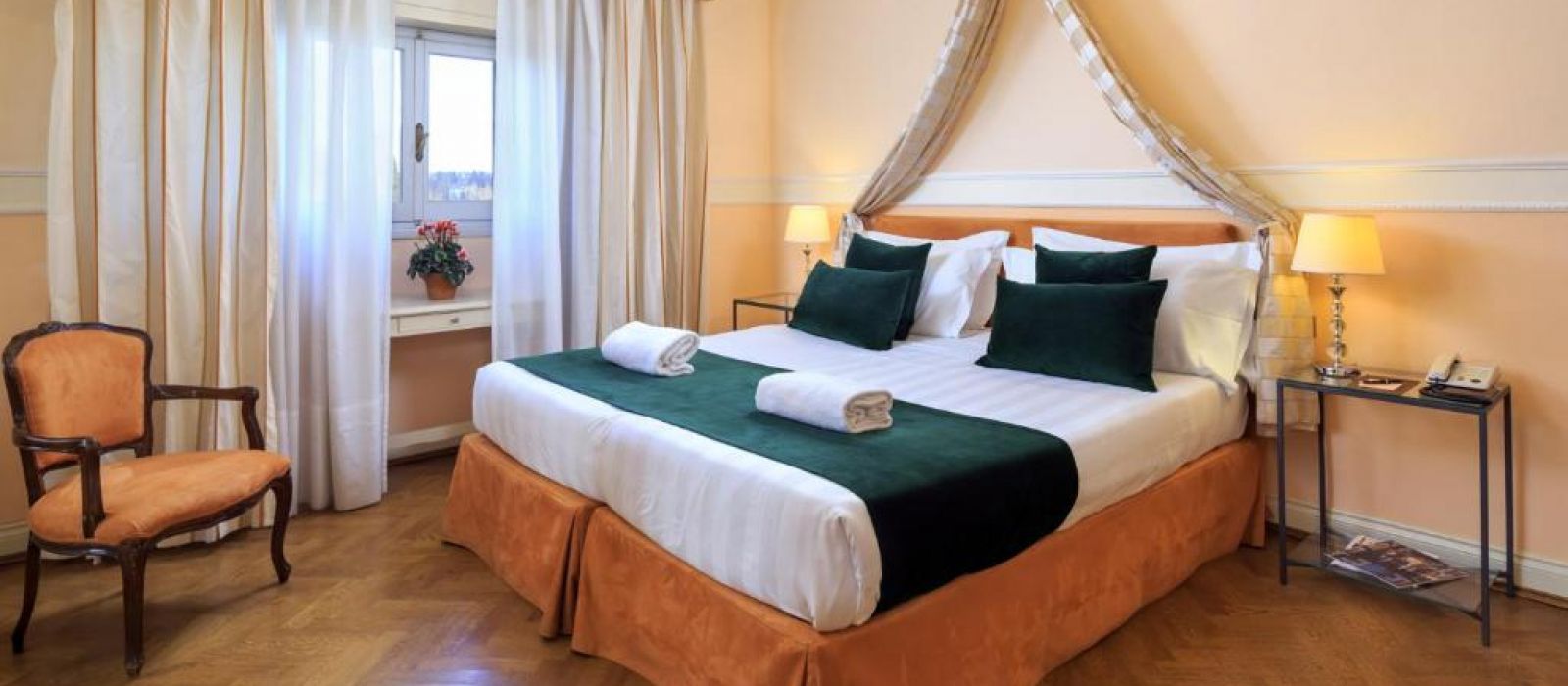 Chaque chambre de l'Hotel Villa Carlotta est équipée de la climatisation, d'une télévision par satellite et de parquet élégant. Toutes sont décorées dans un style classique avec des lustres et des meubles en bois laqué.