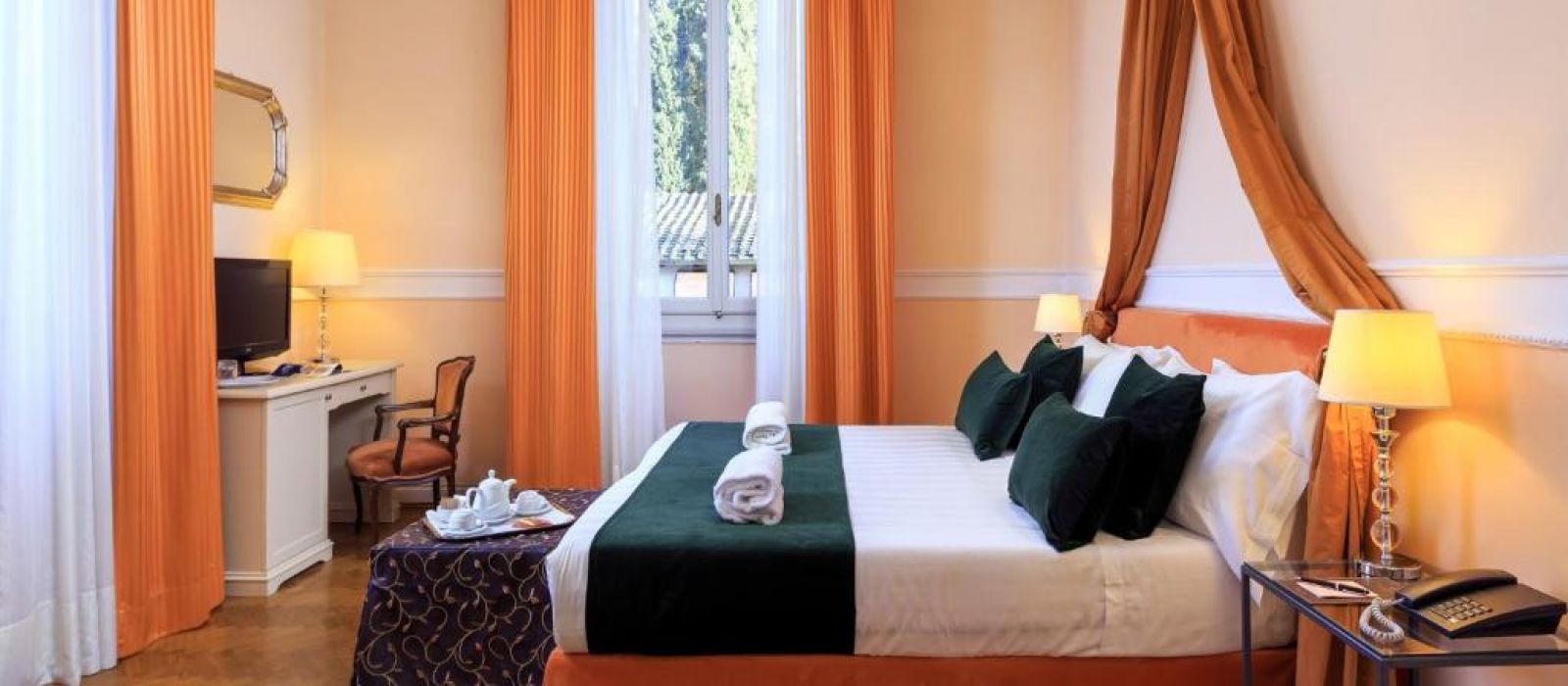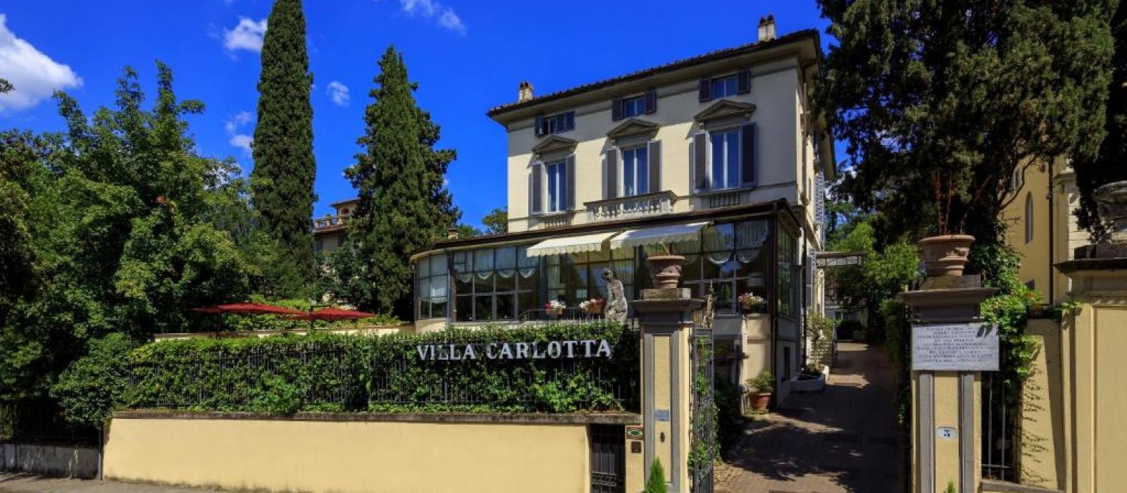 L'Hotel Villa Carlotta occupe un manoir de campagne du XIXe siècle entouré de parcs et de jardins. Il est situé à proximité de la terrasse panoramique de la place Michel-Ange (Piazzale Michelangelo) et à 15 minutes de marche du Ponte Vecchio. Cet hôtel 4 étoiles possède une piscine et propose gratuitement un parking ainsi qu'une connexion Wi-Fi.