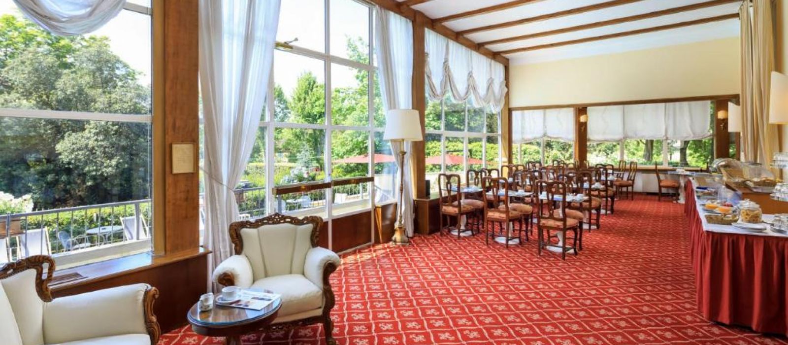 Vous pourrez vous détendre sur la véranda et dans le jardin. Des cocktails internationaux sont servis au bar, tandis que vous pourrez choisir parmi une sélection de plats chauds et froids pour le déjeuner et le dîner.
