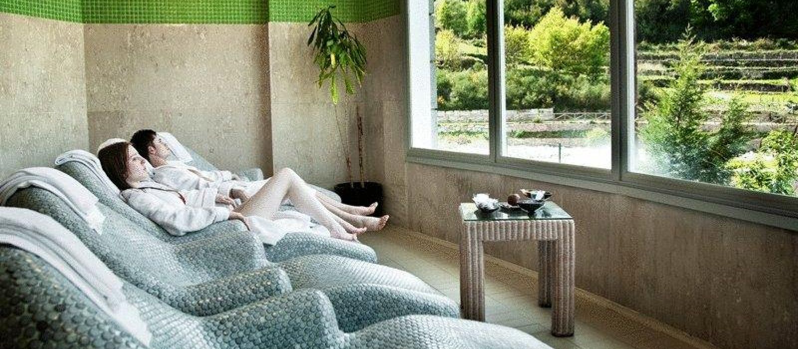 Le premier étage du spa est doté de douches aromatiques, d'un bain à remous et de chaises longues thermales. Des massages y sont prodigués. La piscine thermale, qui offre une vue imprenable sur les montagnes de Xurés, est dotée de cols de cygne et de jets d'eau. Le deuxième étage comporte une salle de sport moderne et un certain nombre de cabines de soins. Les soins de beauté sont dispensés moyennant des frais supplémentaires.