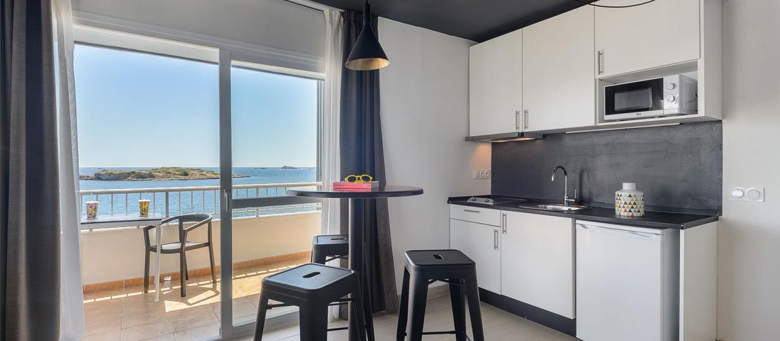 L'établissement propose des appartements spacieux dotés d'un balcon offrant une vue spectaculaire sur la mer.