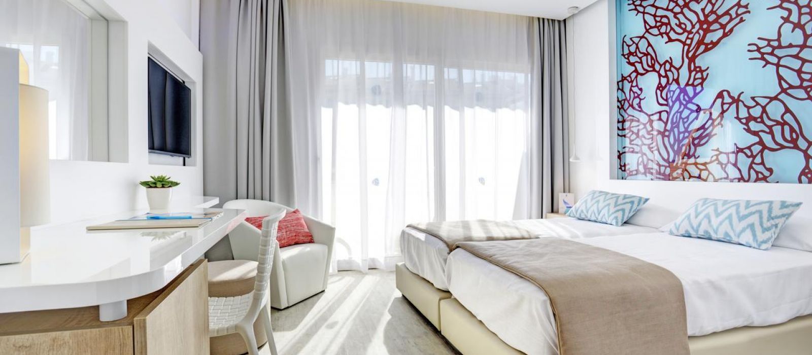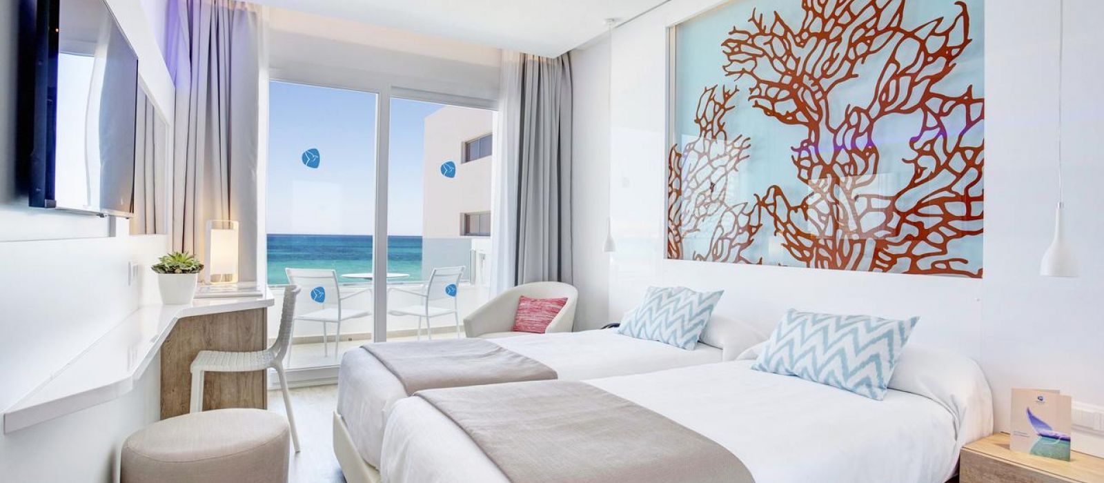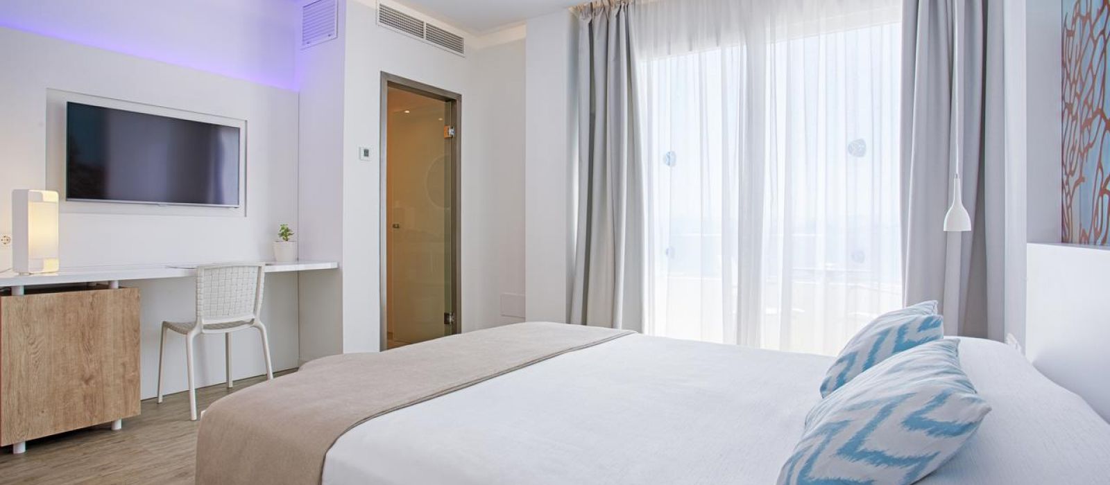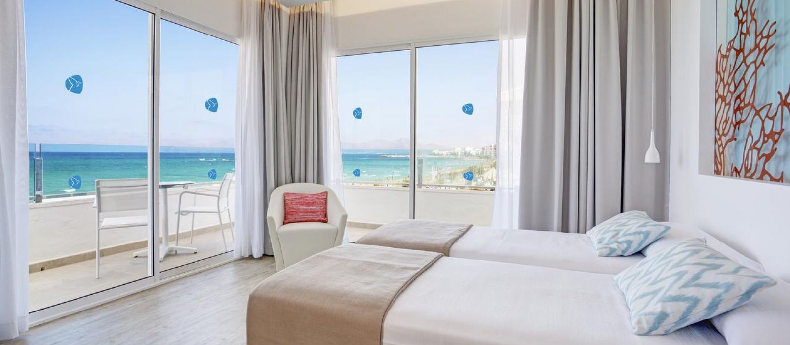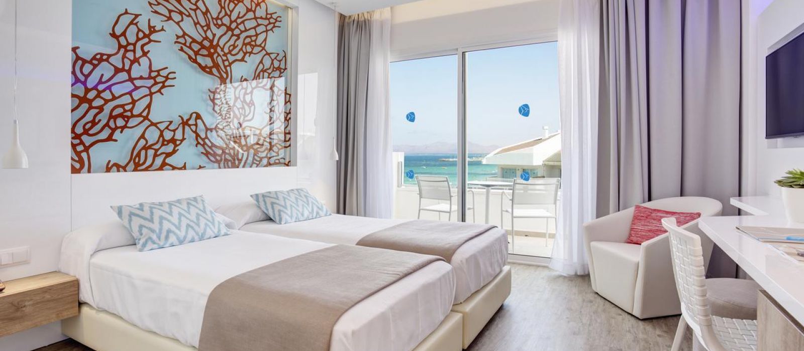 Toutes les chambres du The Sea Hotel by Grupotel disposent de la climatisation et d'un balcon privé. Certaines offrent une vue sur la mer. Elles comprennent aussi une télévision, un téléphone et une salle de bains privative.