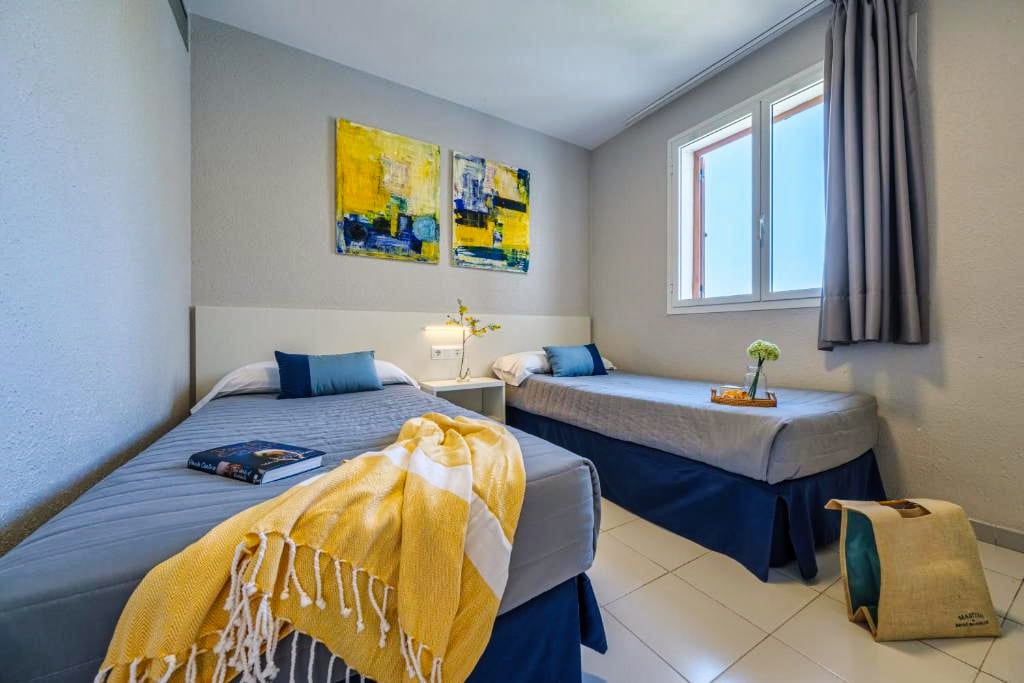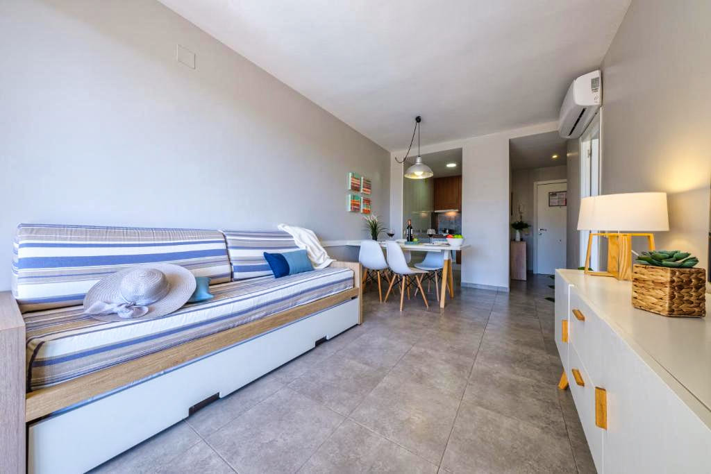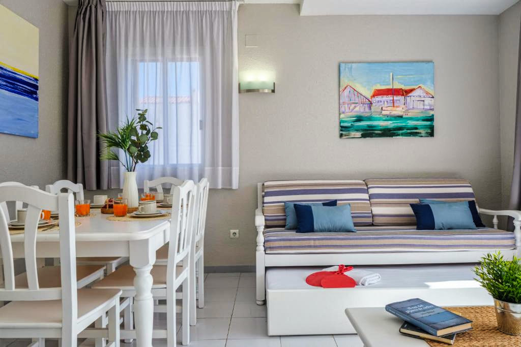 Les appartements Standard des Appartements Estival Park 4★ sont spacieux, lumineux et parfaitement équipés pour un séjour en toute autonomie. Ils disposent d’une chambre séparée, d’un salon avec canapé-lit, d’une cuisine équipée (plaques de cuisson, micro-ondes, réfrigérateur, vaisselle), d’une télévision satellite, d’un téléphone, d’un coffre-fort, du wifi gratuit et d’un balcon ou d’une terrasse. La salle de bain comprend une baignoire ou douche, un sèche-cheveux et des articles de toilette. Confortables et fonctionnels, ils peuvent accueillir jusqu’à quatre personnes, ce qui en fait un excellent choix pour les familles ou les couples souhaitant profiter d’un espace indépendant.