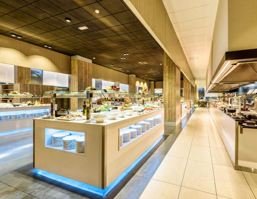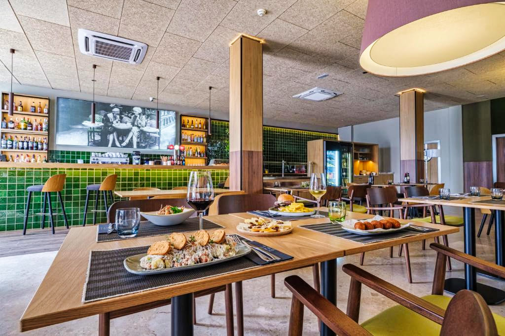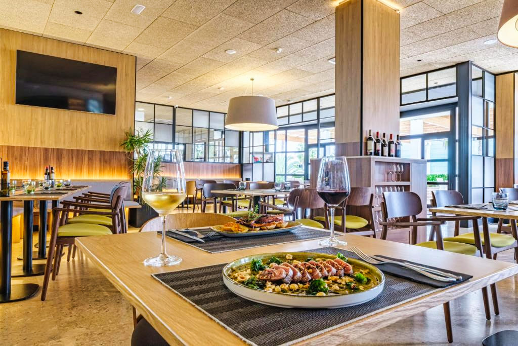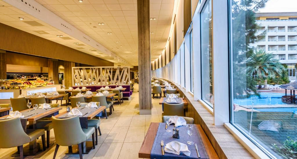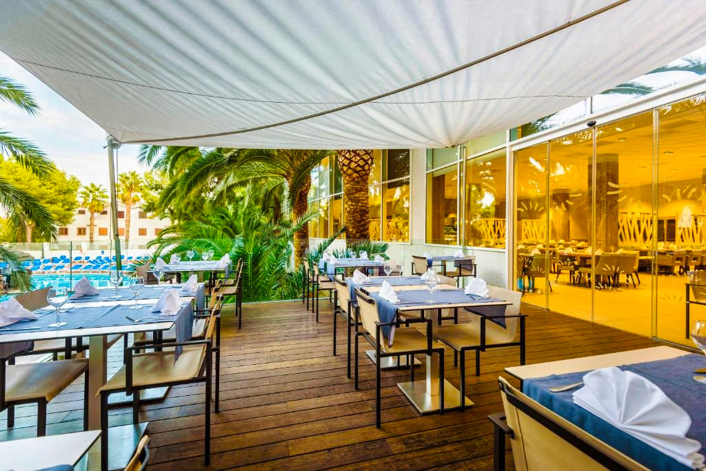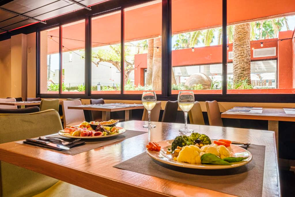 Les clients des Appartements Estival Park 4★ peuvent choisir de séjourner en logement seul, ou d’opter pour une formule avec petit-déjeuner, demi-pension, pension complète ou tout compris dans les restaurants du complexe Estival Park. Le restaurant principal propose une cuisine méditerranéenne et internationale servie sous forme de buffet varié, avec des soirées à thème et des plats adaptés aux régimes végétariens ou sans gluten. Plusieurs bars et snack-bars sont également disponibles pour des boissons ou encas à toute heure.