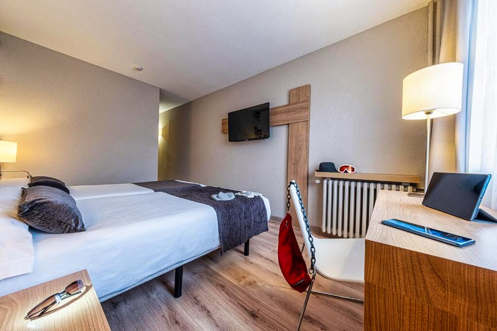 Les chambres Standard de l’Hôtel Sporting 4★ sont chaleureuses, modernes et insonorisées, offrant un espace confortable après une journée d’activités. Elles disposent de la climatisation et du chauffage individuel, d’une télévision à écran plat avec chaînes satellite, d’un coffre-fort, d’un téléphone, du wifi gratuit, et d’une salle de bain complète équipée d’une baignoire ou douche, sèche-cheveux et articles de toilette. Certaines chambres offrent une vue directe sur les montagnes enneigées, pour un séjour empreint de calme et d’évasion.