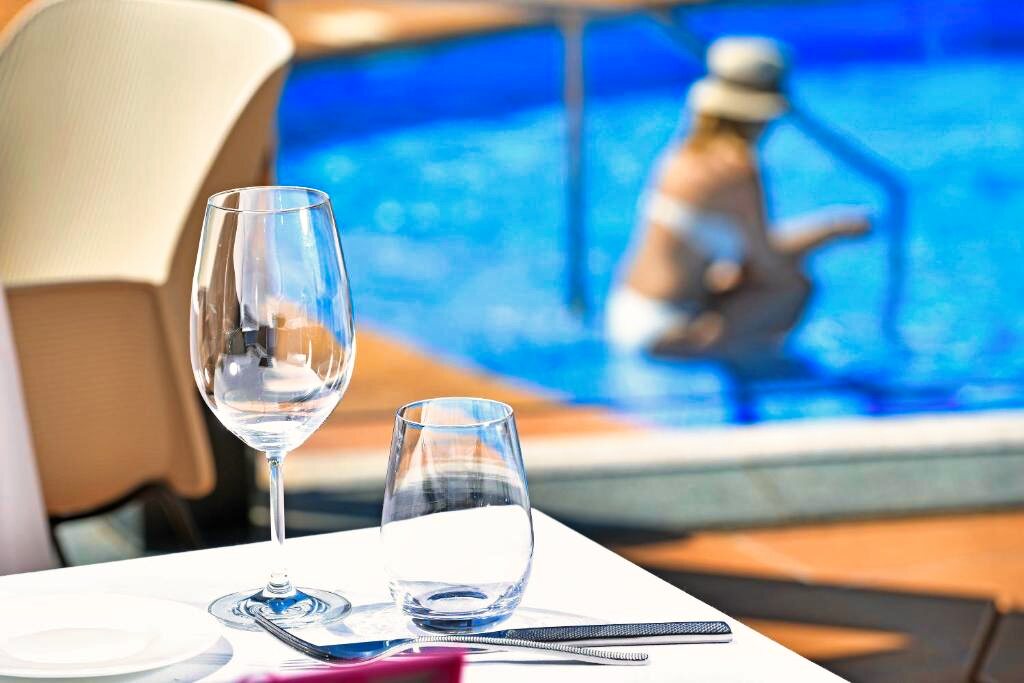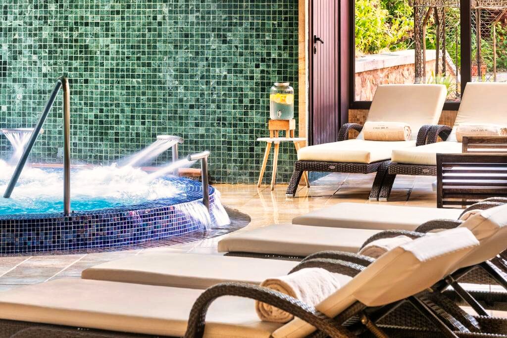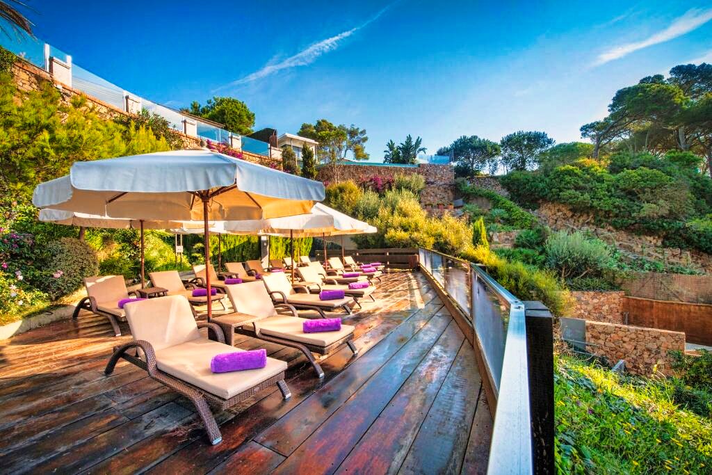 L’hôtel dispose d’une superbe piscine extérieure entourée d’un solarium équipé de transats et parasols, offrant une vue imprenable sur la Méditerranée. Le spa « Sa La Mar » est un espace de bien-être de plus de 600 m² comprenant piscine chauffée, sauna, hammam, jacuzzi, douches sensorielles et une carte complète de soins et massages. Une salle de sport moderne est également mise à disposition. Parmi les nombreux services : réception ouverte 24h/24, wifi gratuit dans tout l’hôtel, bagagerie, blanchisserie, ascenseur et parking privé. L’hôtel est réservé aux adultes pour garantir une atmosphère calme et exclusive.