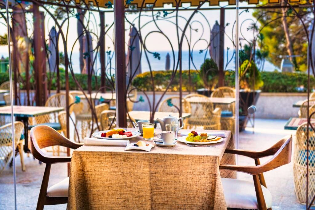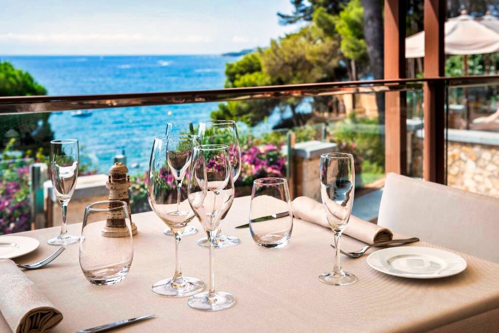 Le restaurant principal « Aurum » propose une cuisine méditerranéenne raffinée, mettant en valeur les produits locaux et de saison dans une ambiance élégante avec vue sur la mer. Le service se présente sous forme de buffet ou à la carte selon la période, avec des options végétariennes et sans gluten sur demande. Les formules disponibles incluent le petit-déjeuner et la demi-pension. Le bar-lounge et la terrasse panoramique invitent à savourer un cocktail au coucher du soleil, dans un cadre intime et relaxant.