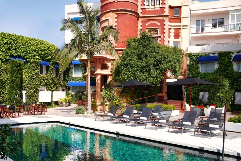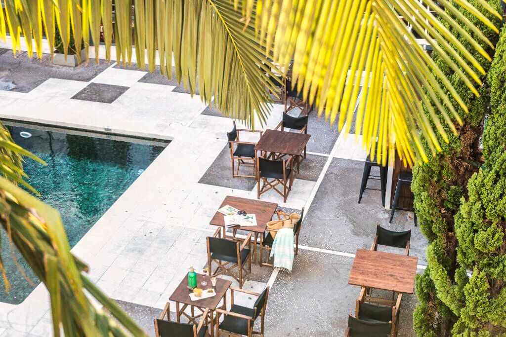 Le patio avec piscine est clairement le cœur de l’hôtel :
